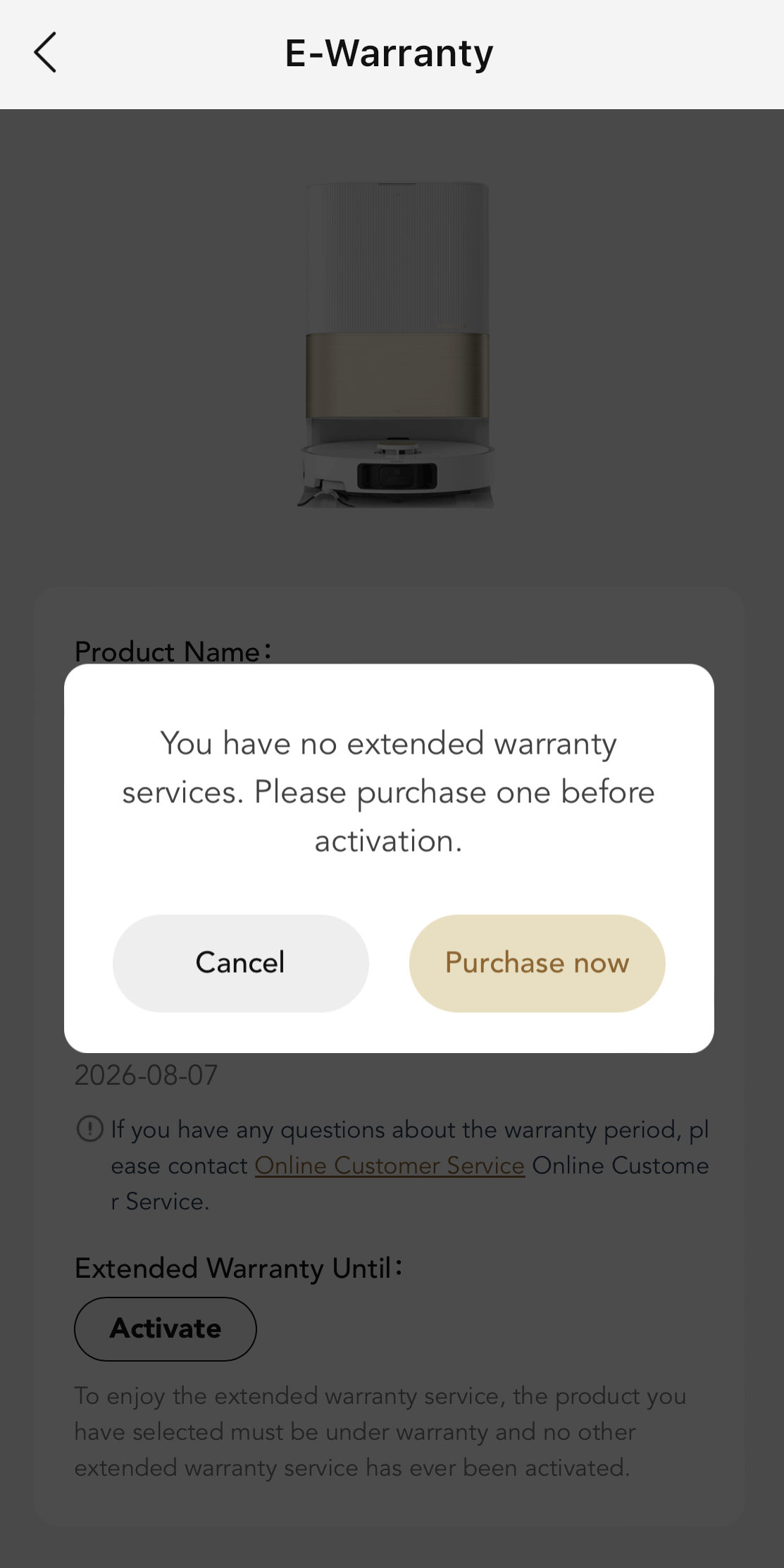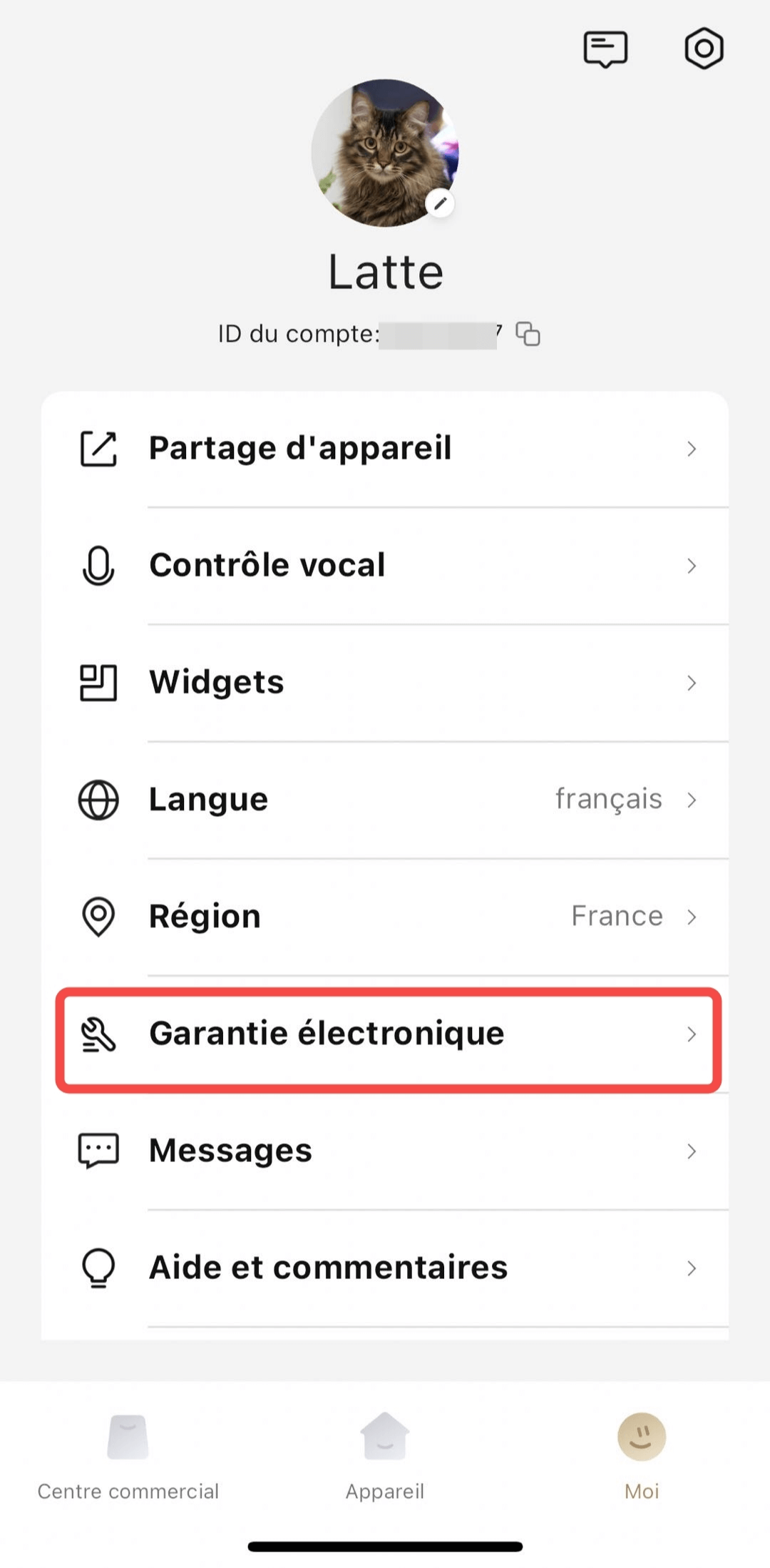 1. Assurez-vous que le compte de connexion à l'application est la même adresse e-mail que le compte utilisé pour vous connecter au site Web officiel où vous avez acheté la garantie prolongée.