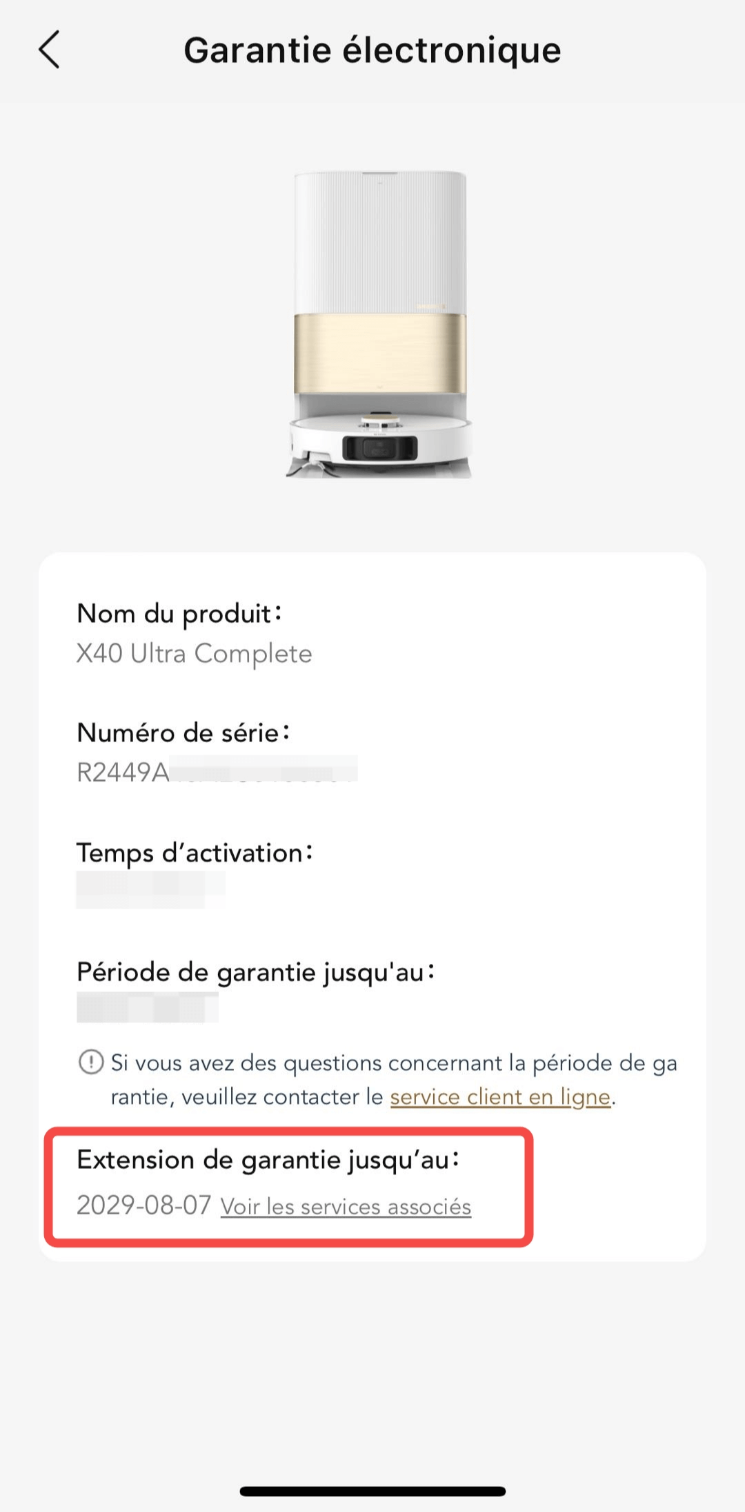 Après une activation réussie, veuillez vérifier si la date de garantie prolongée est mise à jour et correcte.