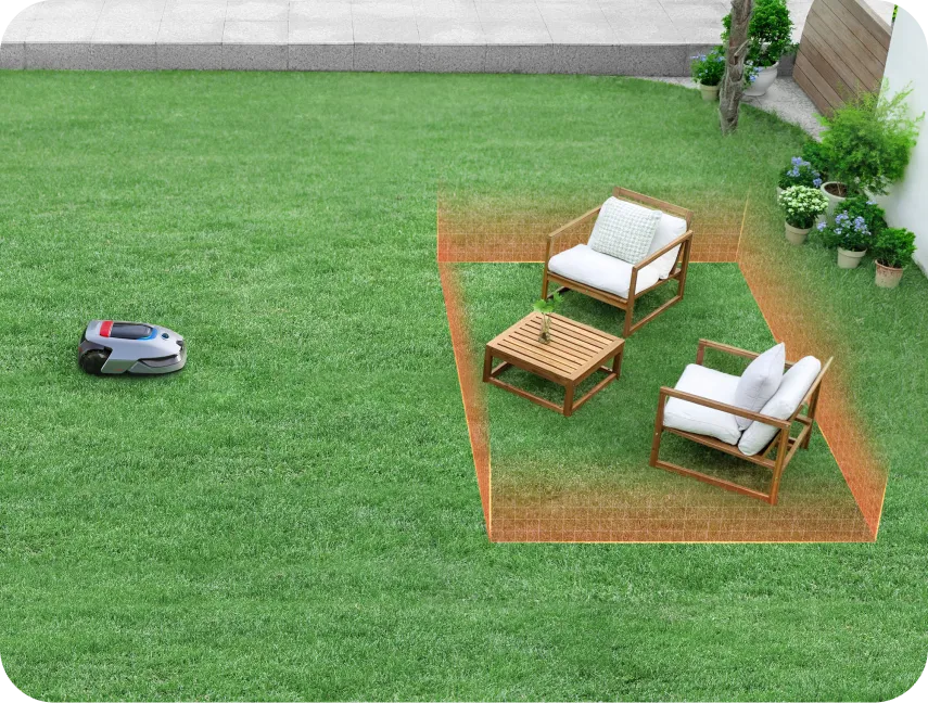 En utilisant le balayage en grille LiDAR et des algorithmes visuels avancés, l'A2 détecte et différencie avec précision les zones d'herbe et sans herbe. Il navigue et scanne rapidement votre jardin, fixant des limites et vous permettant de profiter pleinement de votre temps.