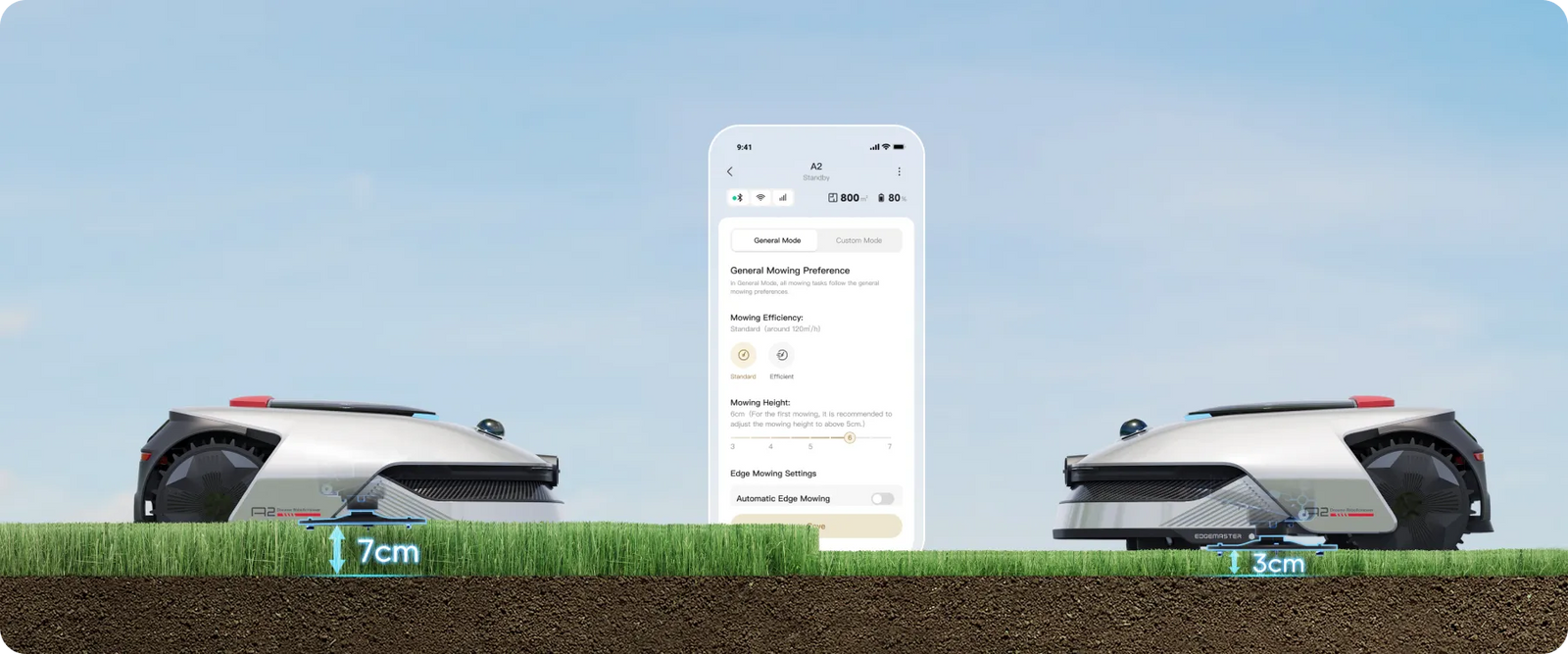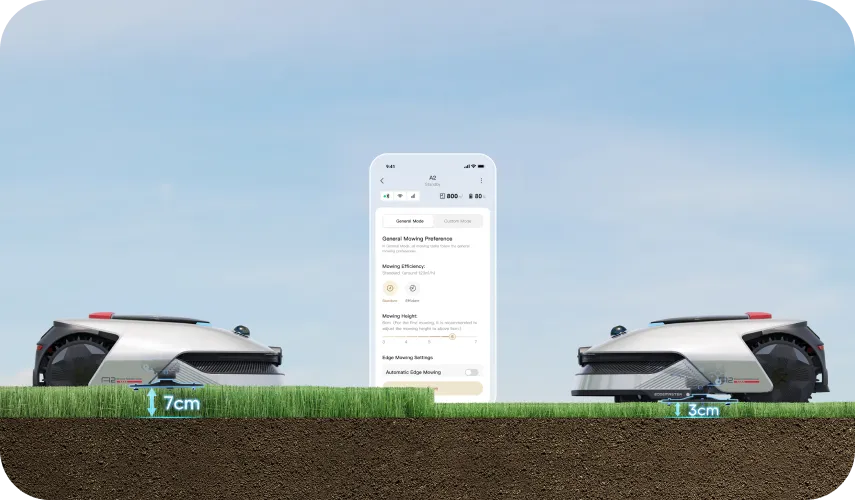 L'A2 offre 5 modes de tonte polyvalents, vous permettant d'entretenir différentes zones d'herbe avec précision et facilité.