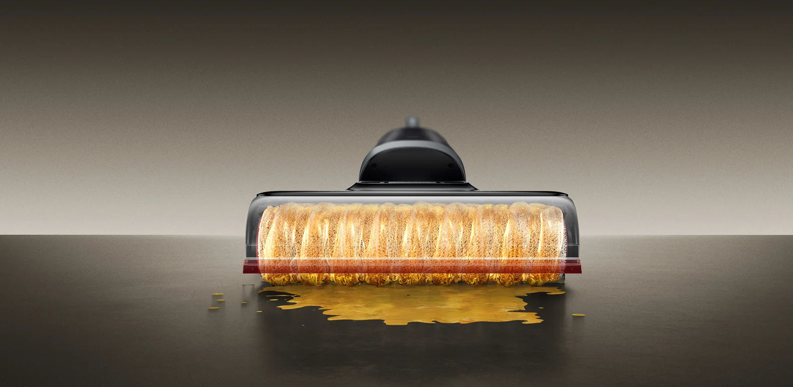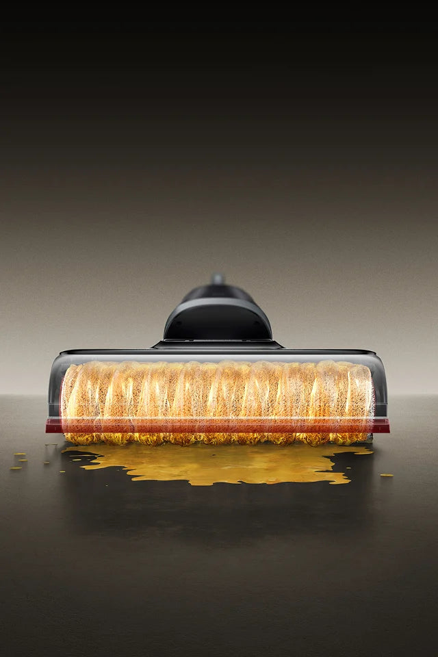 Le nettoyage de la brosse avec de l'eau chaude à 100 °C* assure un lavage en profondeur, tandis que la couverture à 100 %* empêche toute obstruction de l'aspiration due à un nettoyage automatique insuffisant, pour des performances optimales.