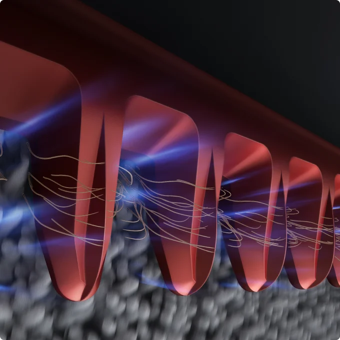 Le racleur résilient TangleCut™ est équipé d'un peigne à dents acérées qui découpe les poils et les cheveux emmêlés lors de l'aspiration, pour laisser la brosse avec zéro nœud* et vous éviter de les démêler à la main.