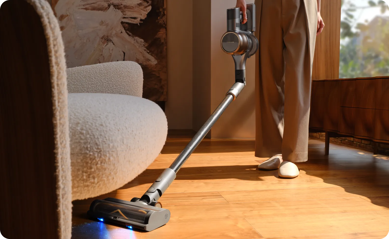 *200 m² : sur la base des tests effectués dans le laboratoire Dreame, en mode éco avec la brosse rotative souple. Les performances réelles varieront en fonction de l’agencement de votre maison.