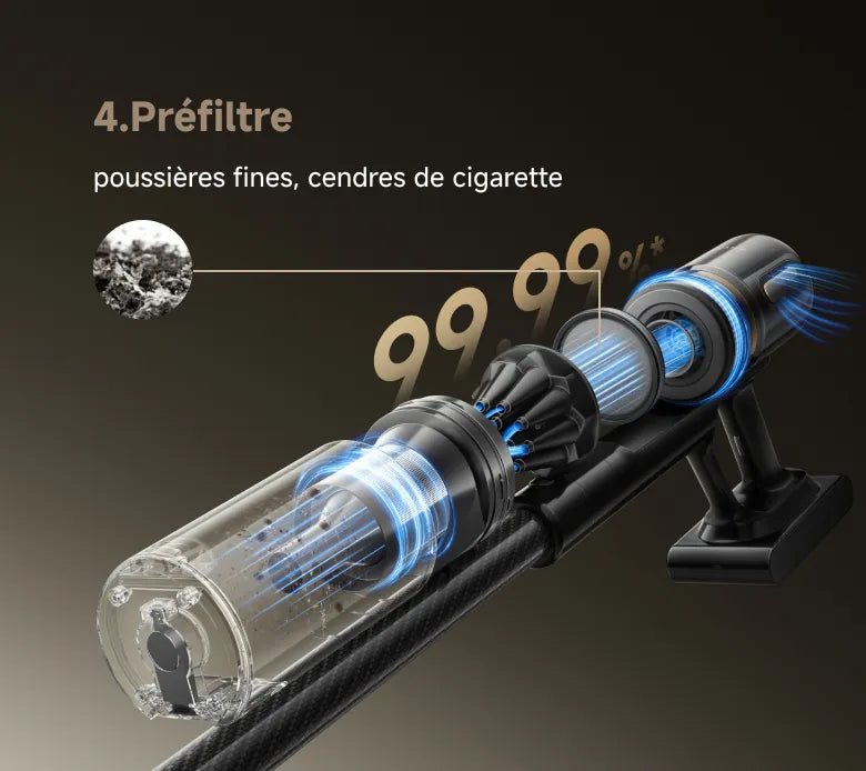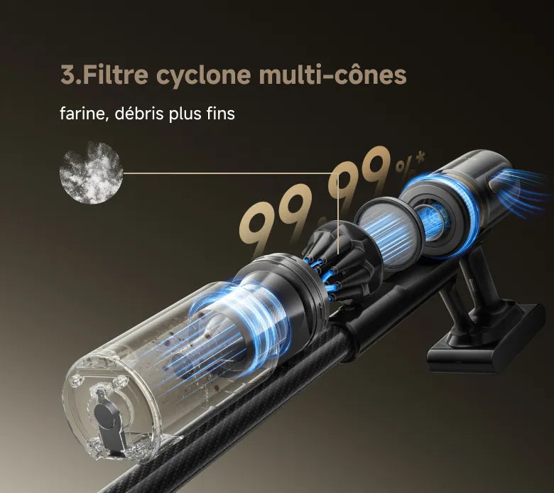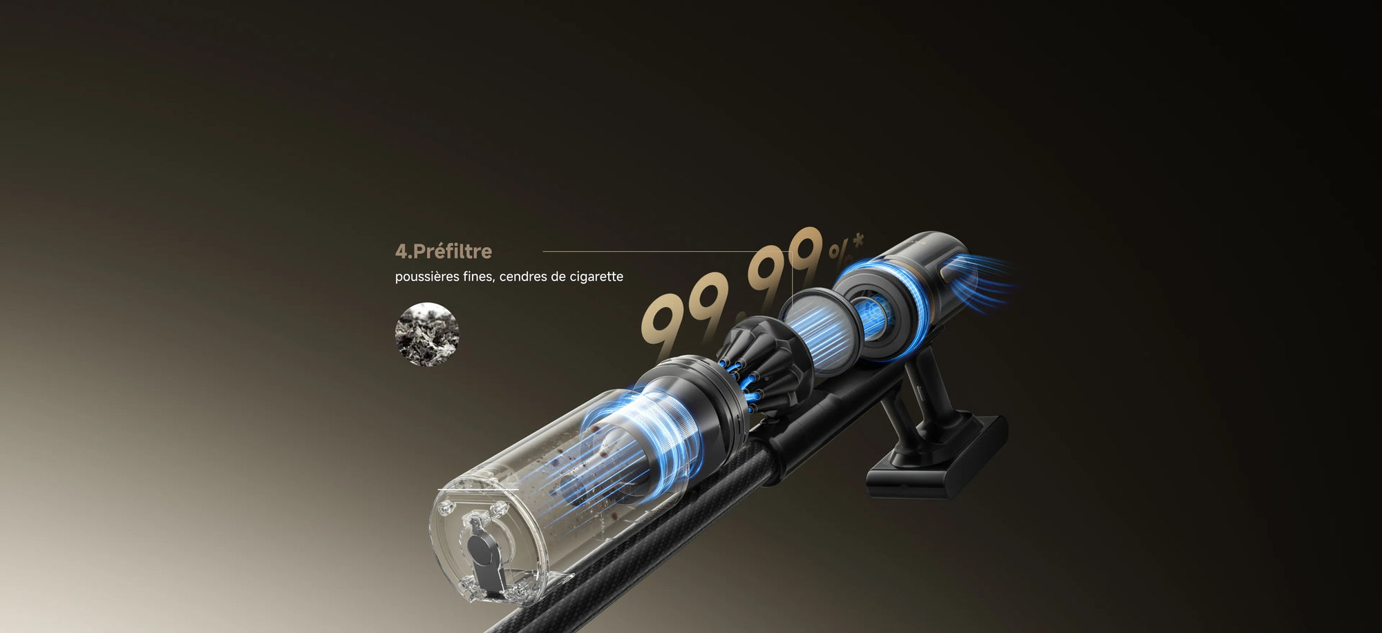 *90 minutes : sur la base des tests effectués dans le laboratoire Dreame, en mode éco avec l’outil combiné.