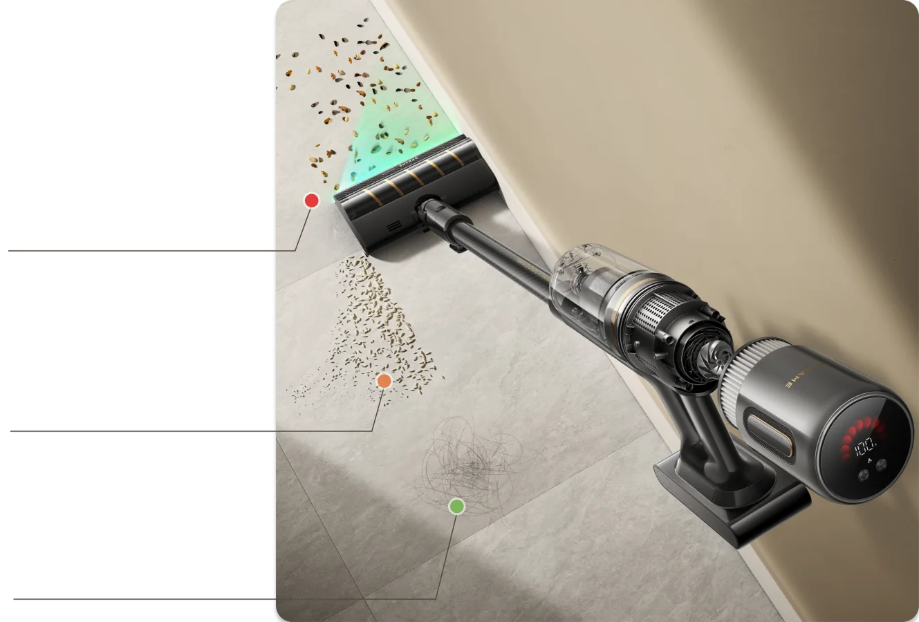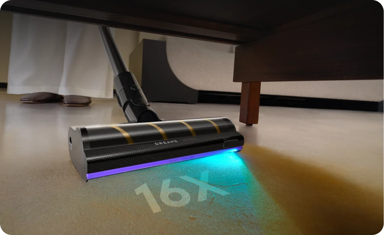*16X plus visible : sur la base de nos tests en laboratoire interne. La lampe LED CelesTect™ améliore la visibilité de la poussière en amplifiant jusqu’à 16 fois les ombres de poussière. Les résultats réels peuvent varier en fonction de l’éclairage et de l’environnement.