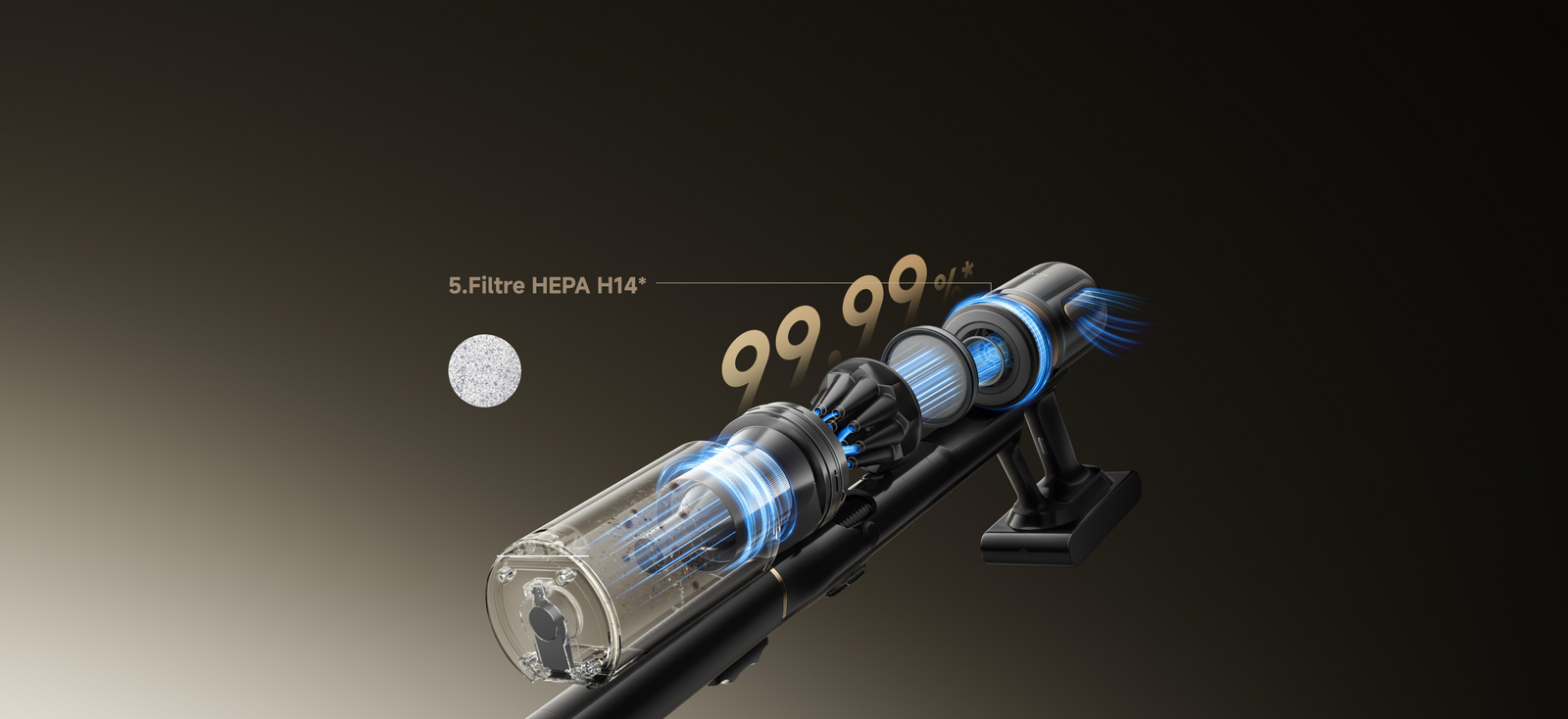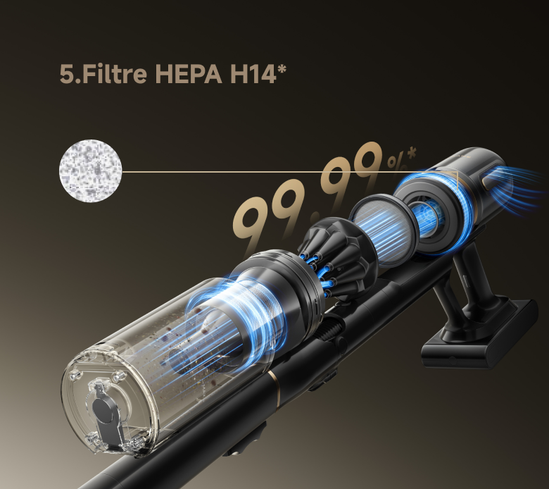 *Filtration des particules ≥ 0,1 µm, efficacité de 99,99 % : atteint jusqu’à 99,99 % d’efficacité de filtration de l’appareil complet pour des particules d’une taille minimale de 0,1 µm. Données issues de tests réalisés par SGS conformément à la norme IEC 62885-4:2020 (modifiée pour mesurer l’efficacité de filtration des particules de 0,1 µm). Rapport n° SHFT250700031271.