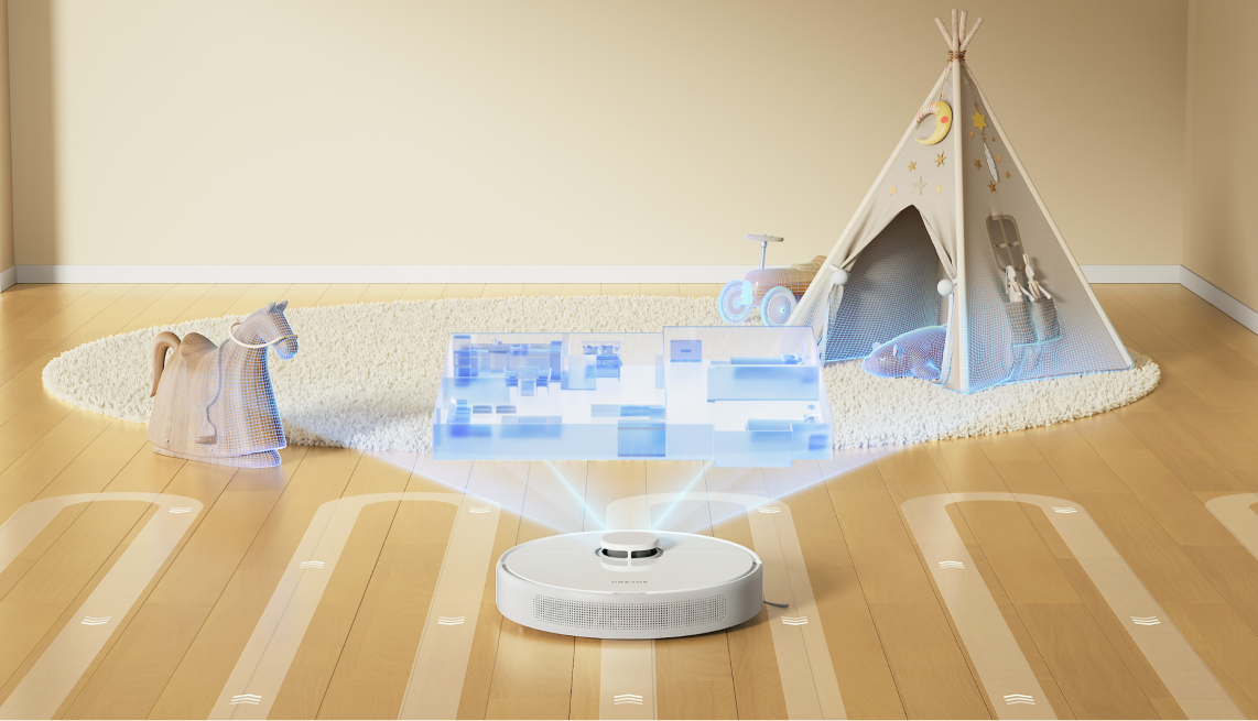 224 m² : tests réalisés dans le laboratoire de Dreame en mode aspiration avec des réglages d'aspiration silencieux. Les performances réelles dépendent de l'environnement domestique.