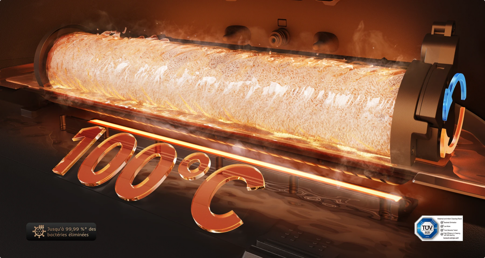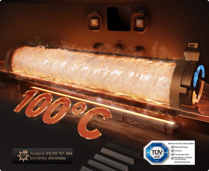 * 99,99 % : L'eau chaude à 100 °C élimine 99,99 % des bactéries E. coli et 99,99 % du virus de la grippe A H1N1 dans des conditions de test en laboratoire, provenant de Laboratories SGS IBR (rapport n° HFT250600026271). Les performances réelles peuvent varier.