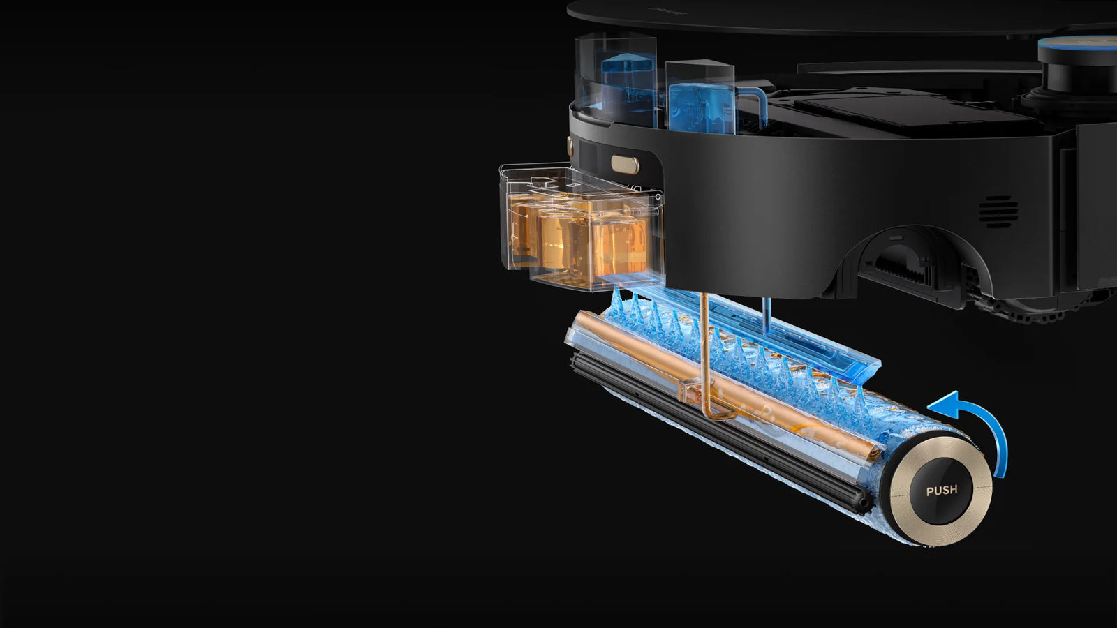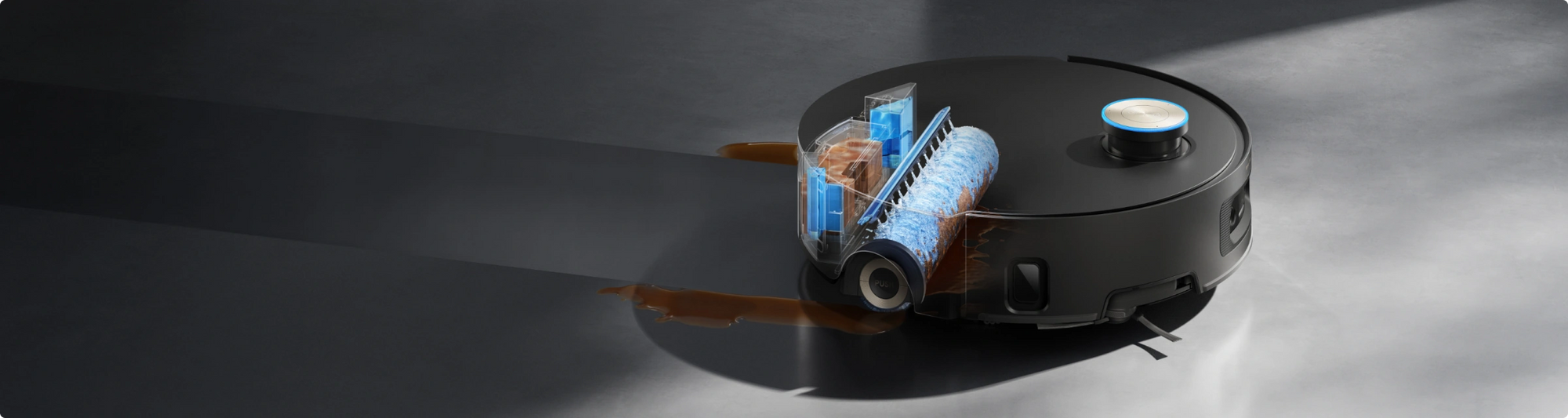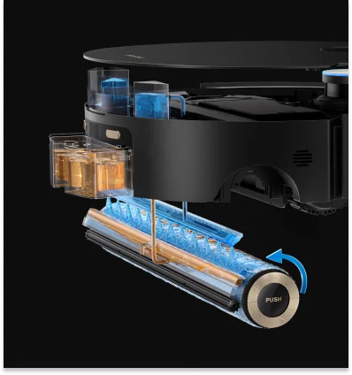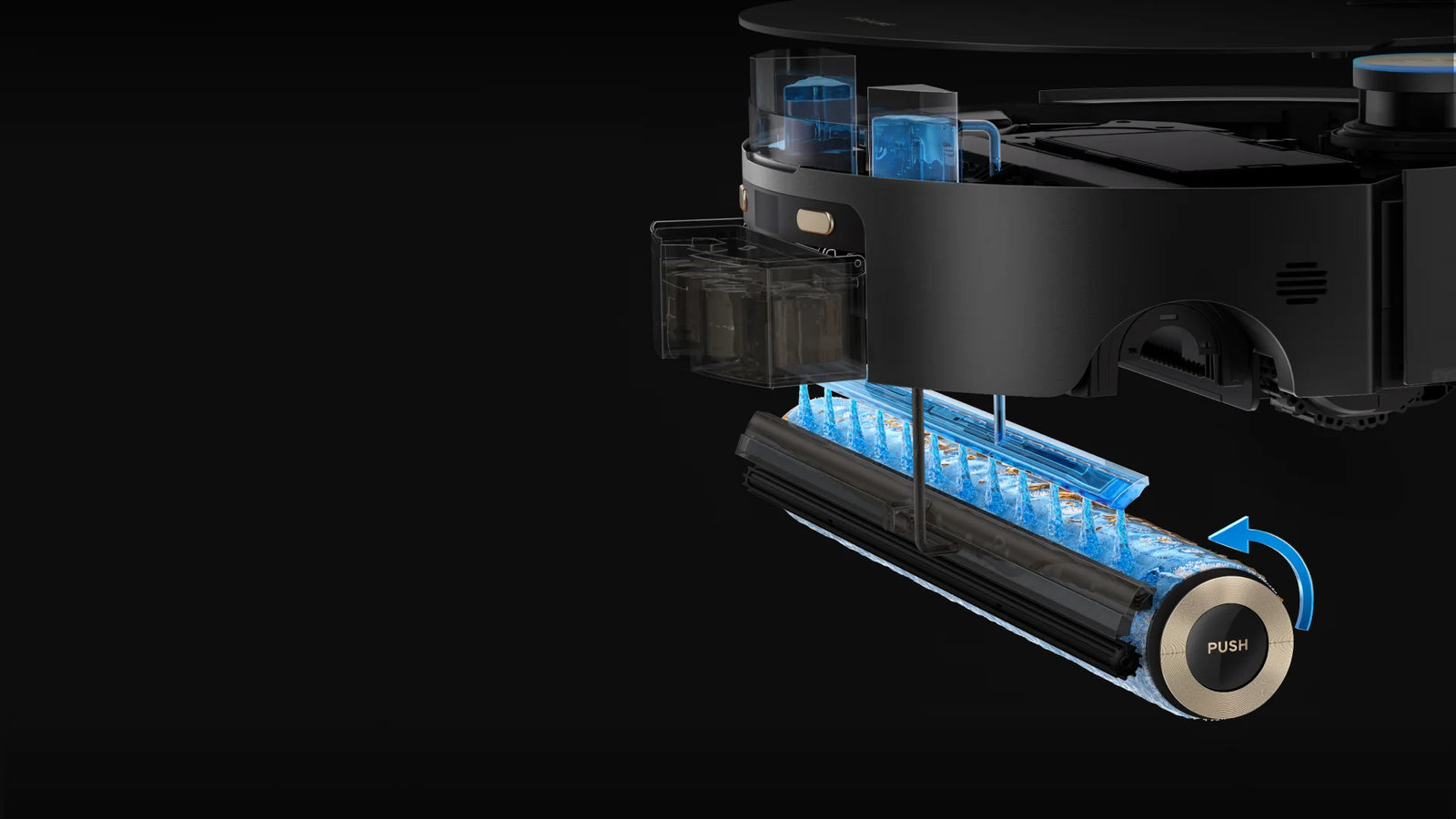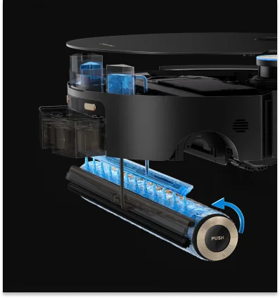 Ce modèle est doté d'un rouleau souple qui tourne dans le sens opposé avec un moteur à grande vitesse pendant le nettoyage, ce qui permet de détendre la serpillère lorsqu'elle entre en contact avec le sol.