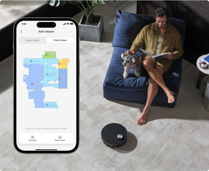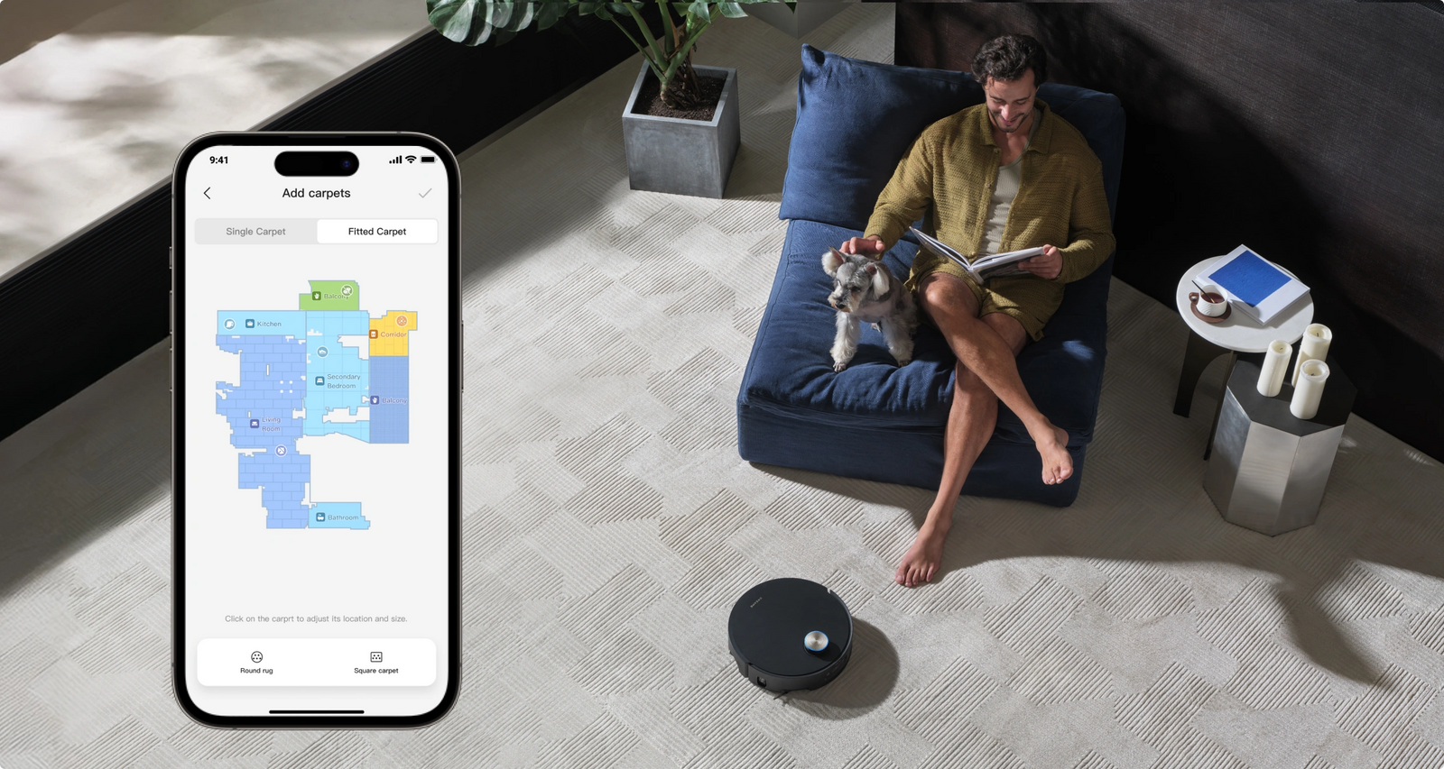 * La fonction n'est pas recommandée pour les tapis d'une hauteur supérieure à 3 cm. En effet, les tapis plus hauts risquent d'être mouillés. Les paramètres de nettoyage des tapis et moquettes à poils moyens à longs doivent être activés manuellement via l'application de nettoyage.