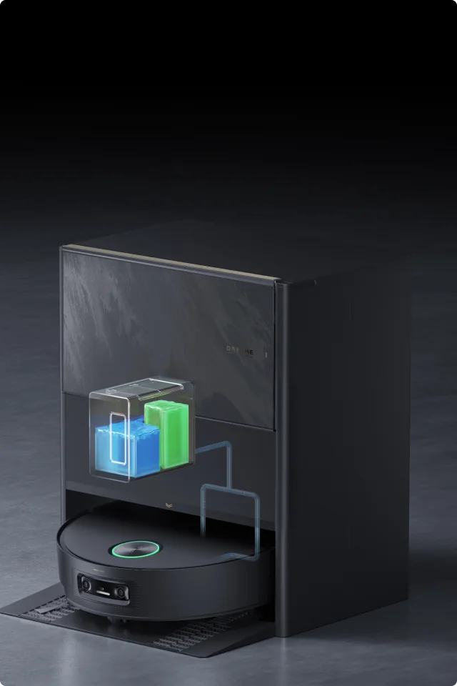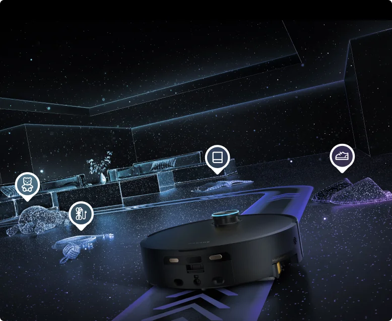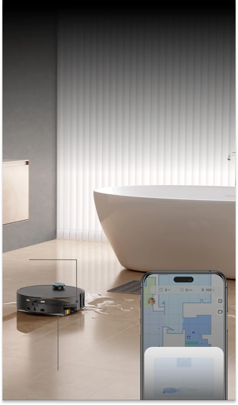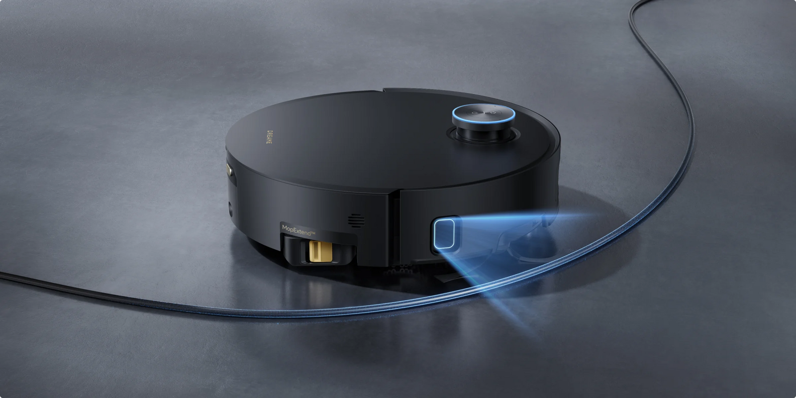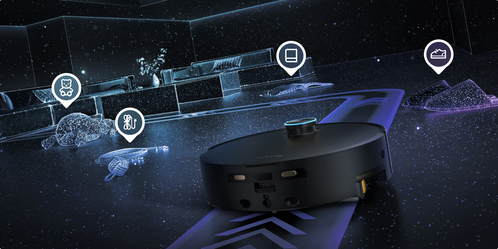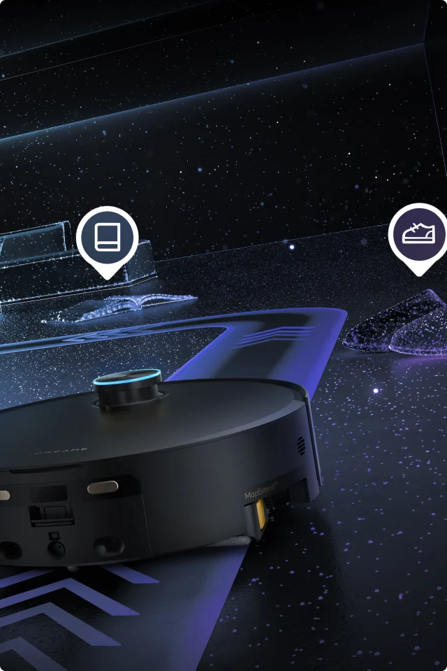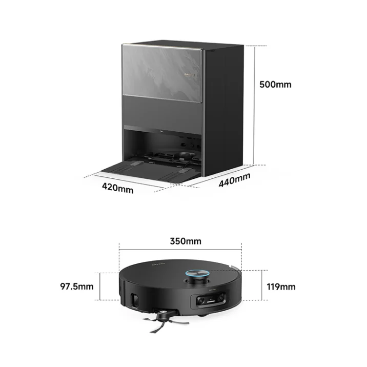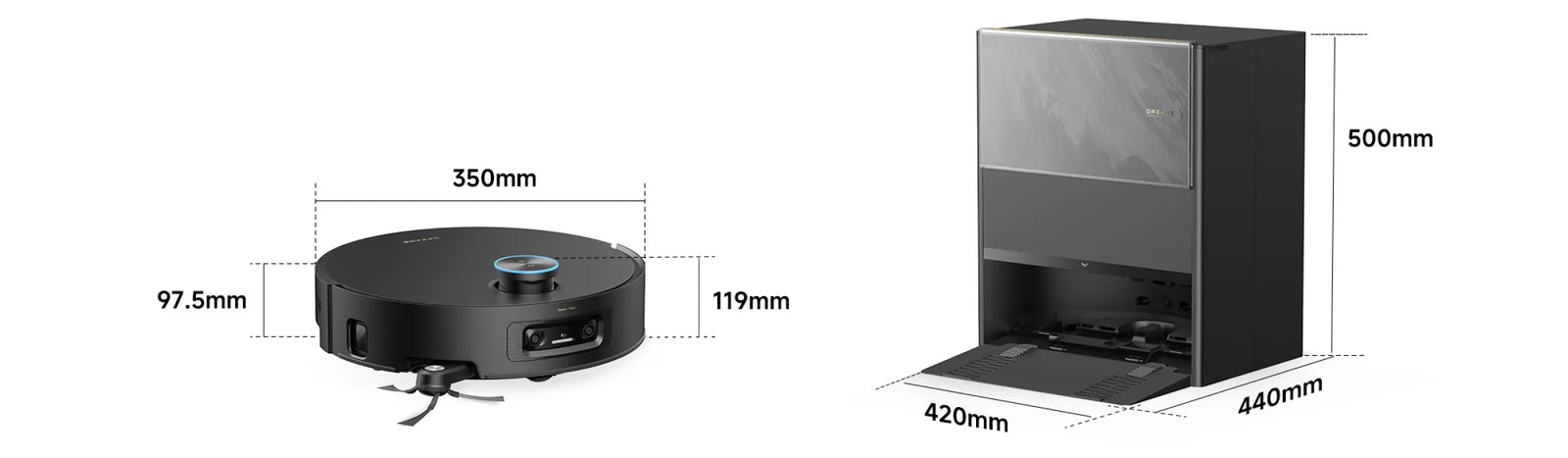 350 x 350 x 97,5 mm (capteur de distance laser rétracté)