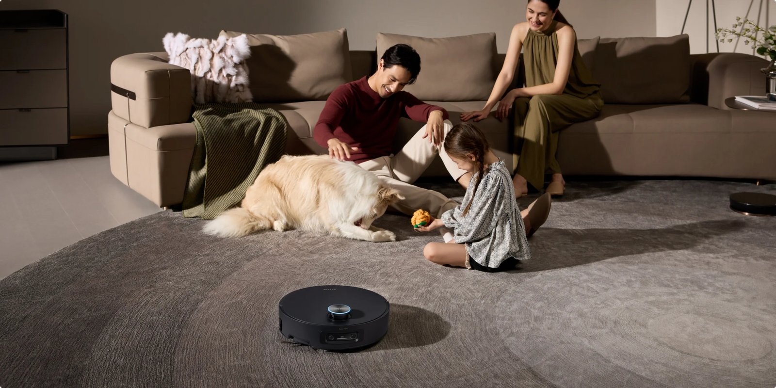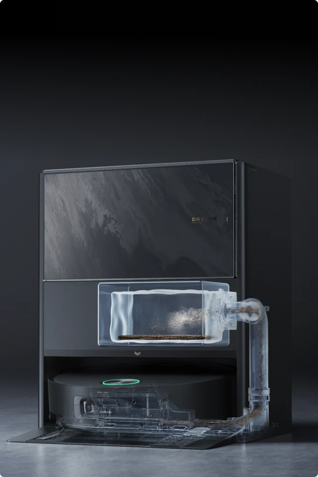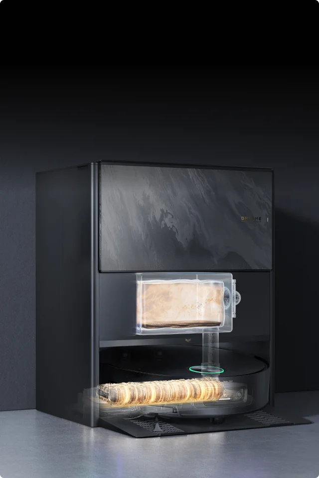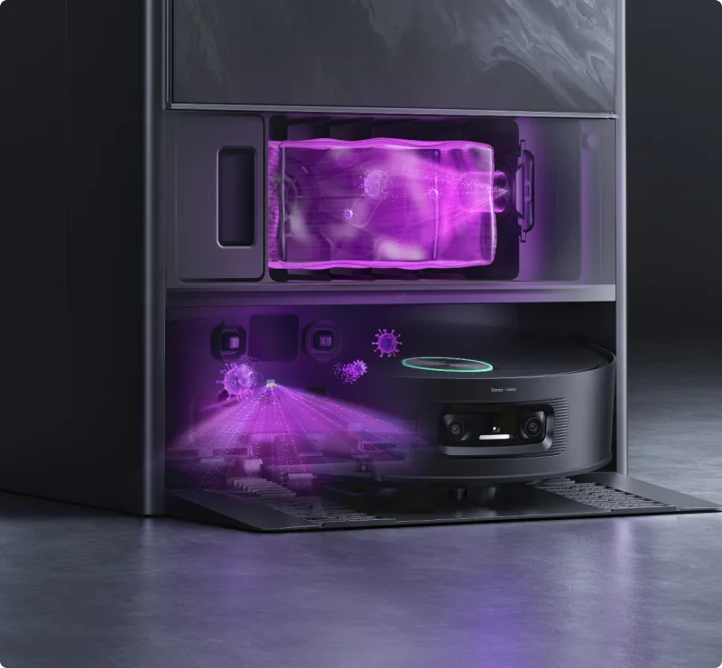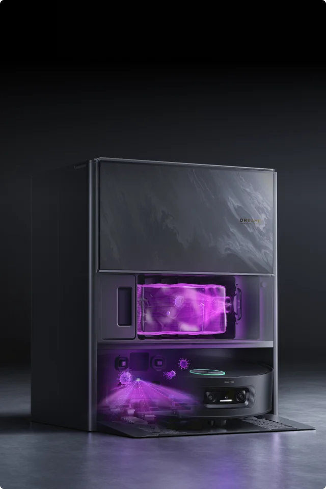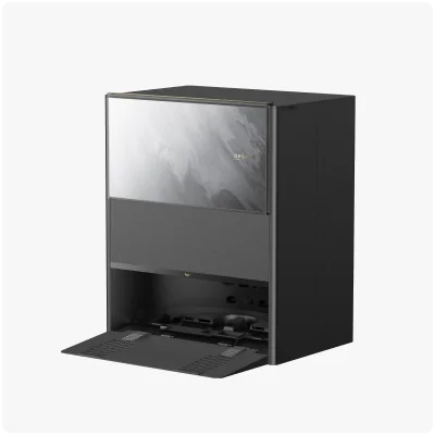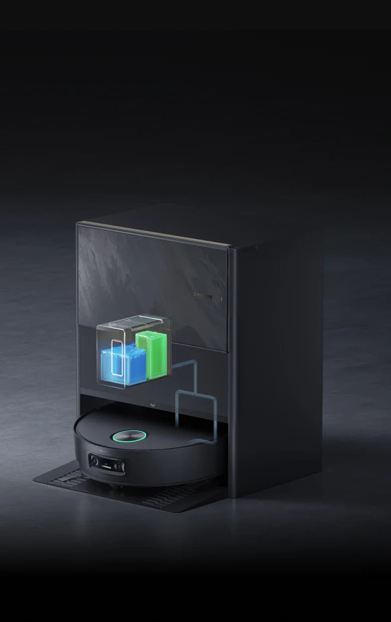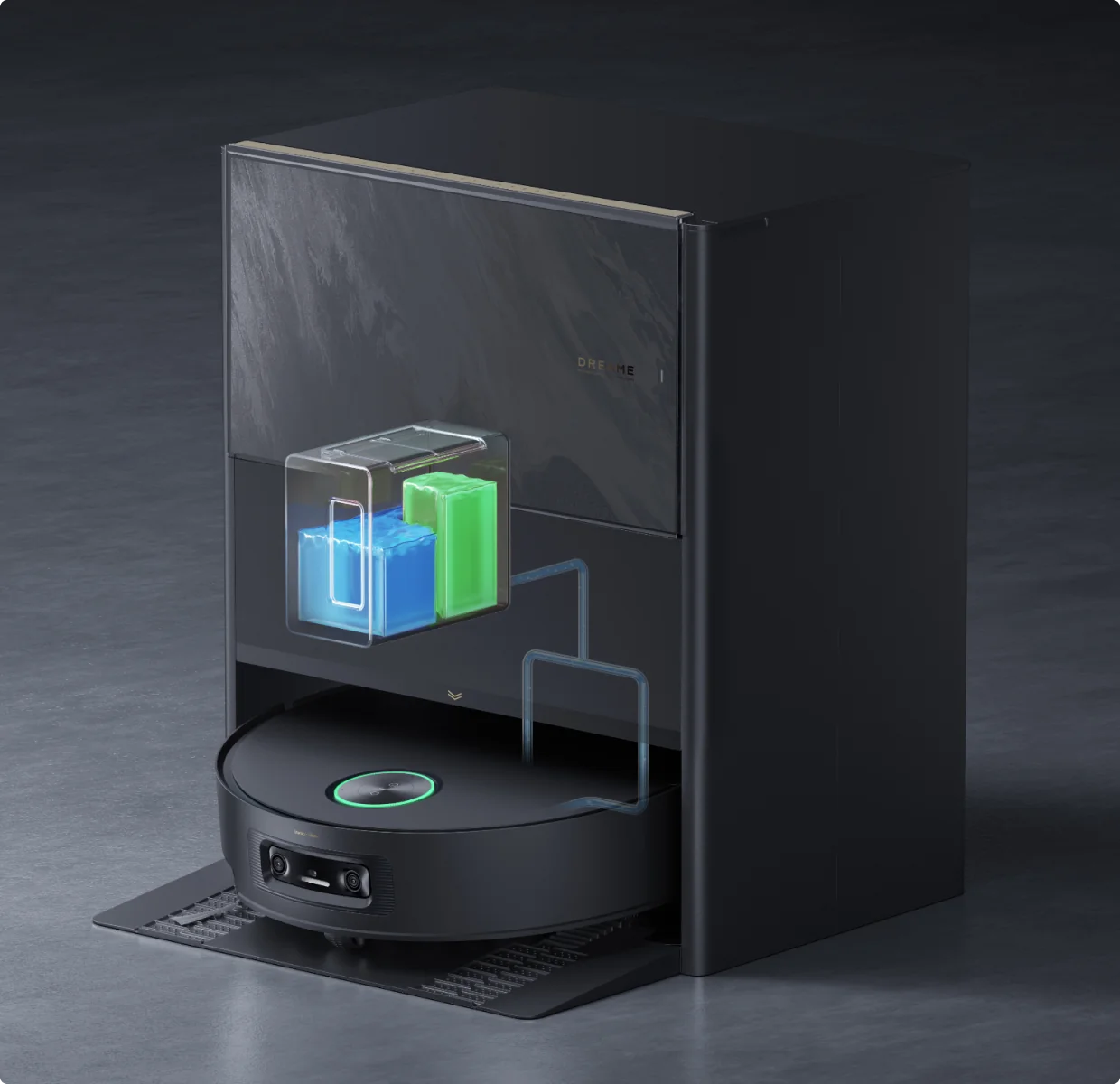 350 x 350 x 97,5 mm (capteur de distance laser rétracté)