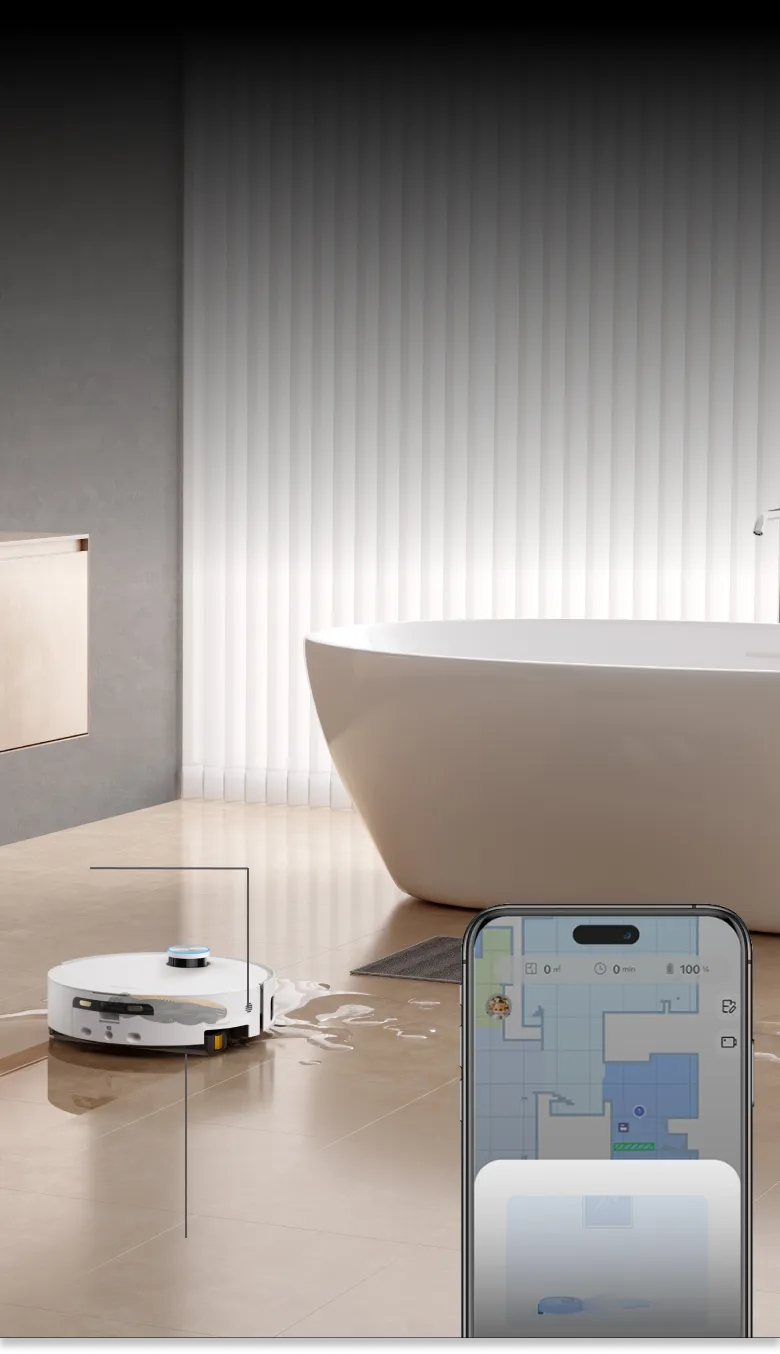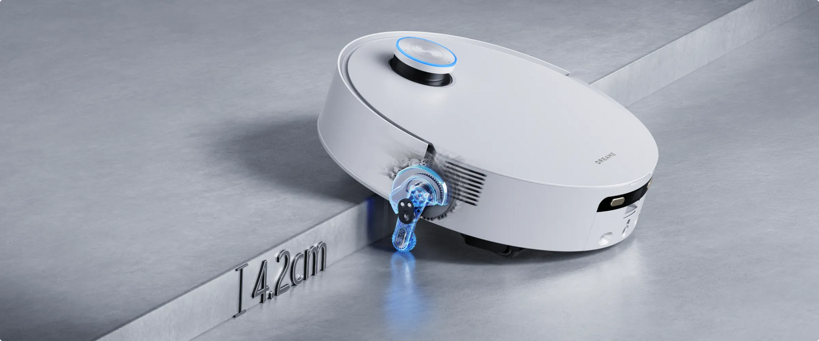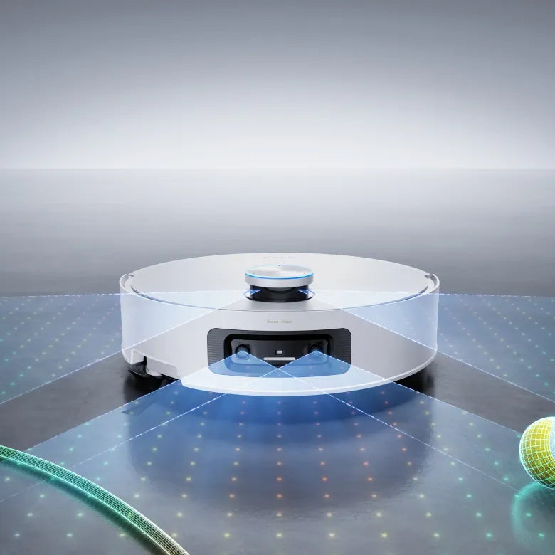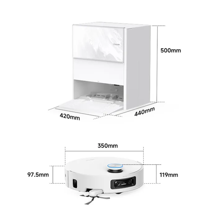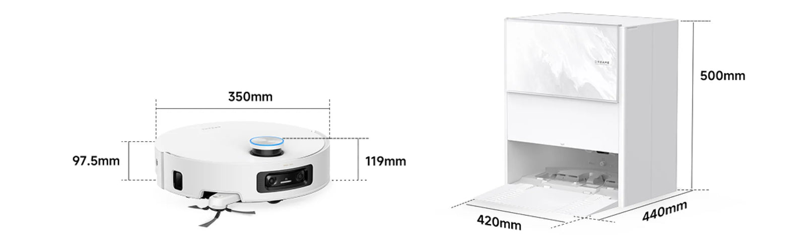 350 x 350 x 97,5 mm (capteur de distance laser rétracté)