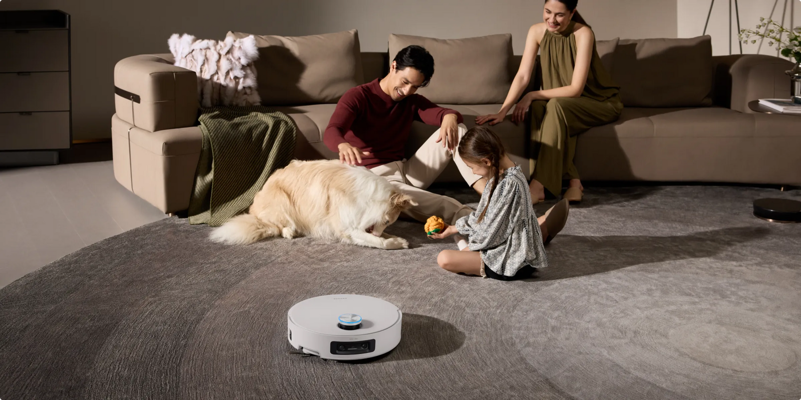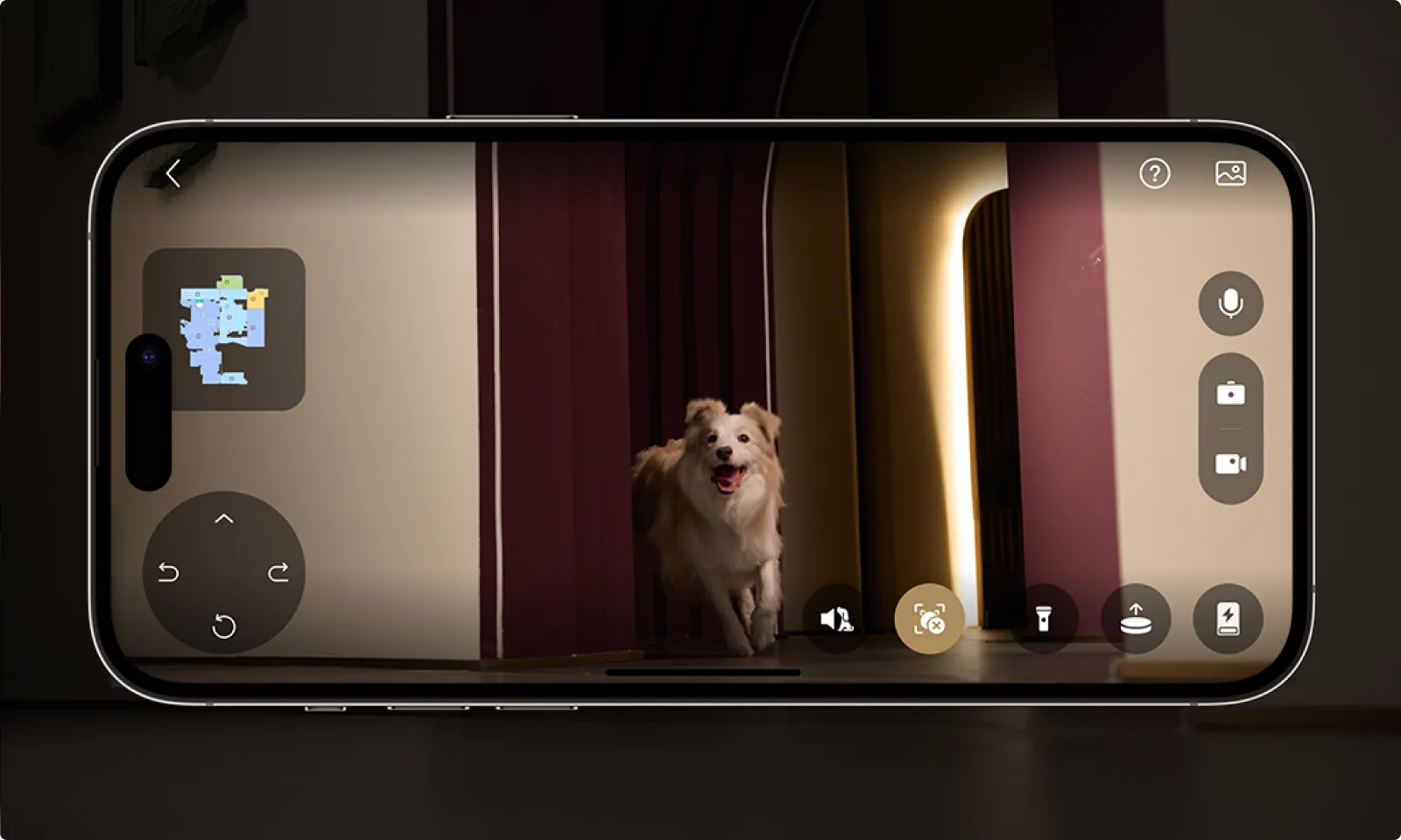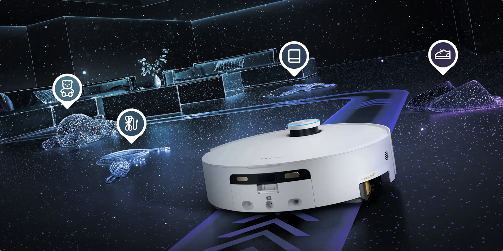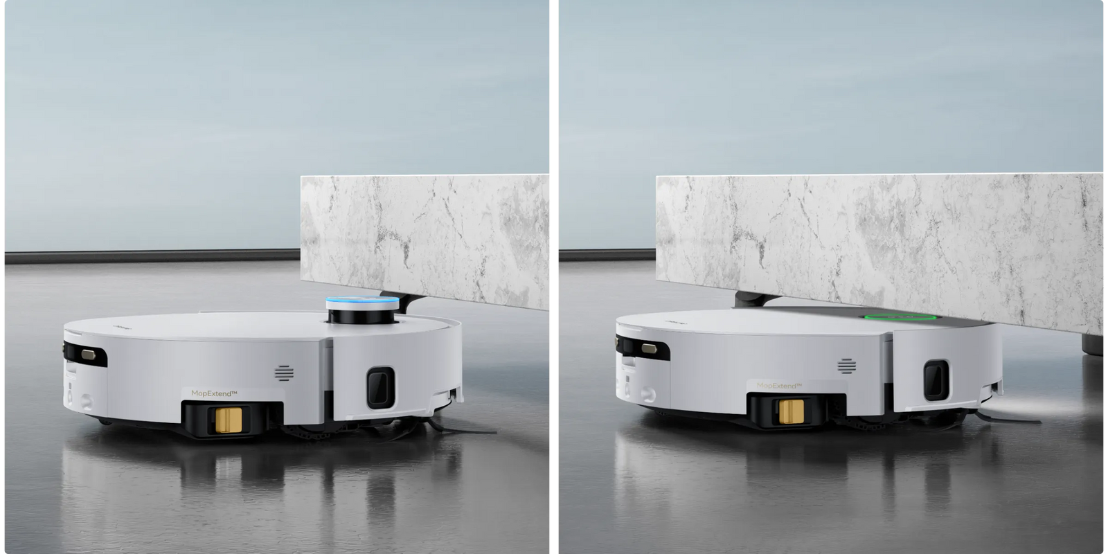 350 x 350 x 97,5 mm (capteur de distance laser rétracté)