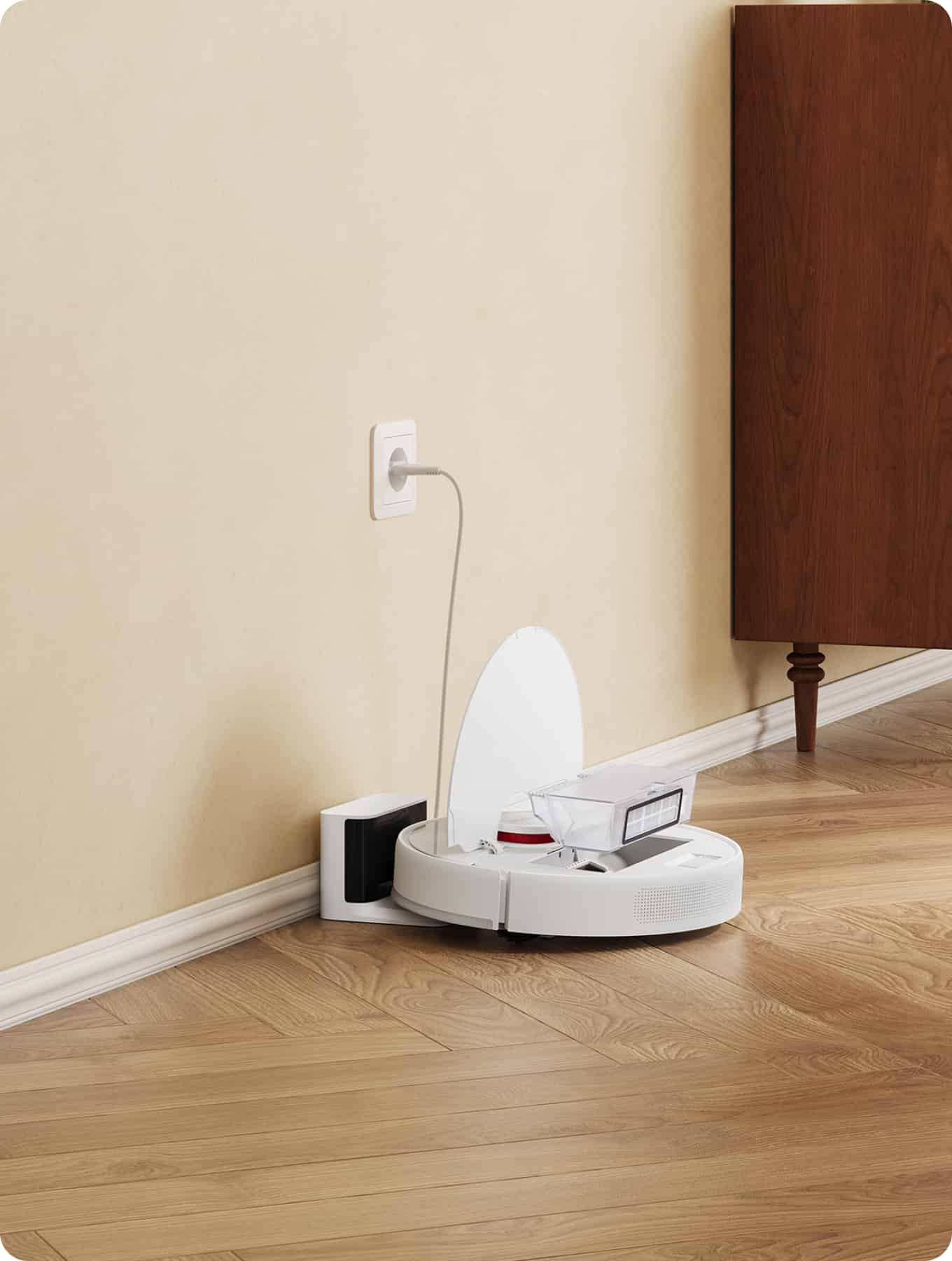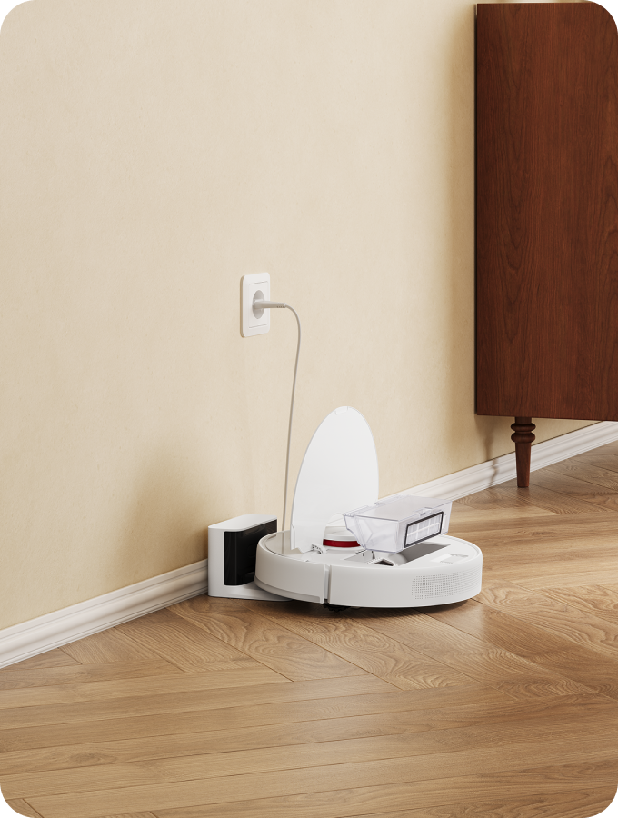 Lorsqu'il n'y a plus d'énergie, il retourne à la station d'accueil pour se recharger et continue à nettoyer là où il s'est arrêté.