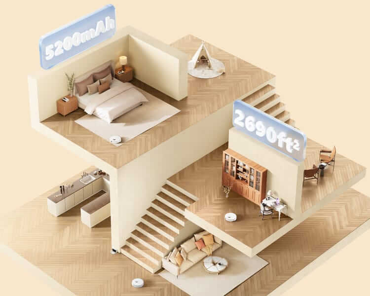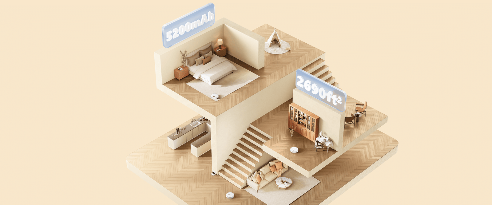 D9 Max offre un nettoyage automatique pour les grandes surfaces grâce à une batterie de 5 200 mAh.