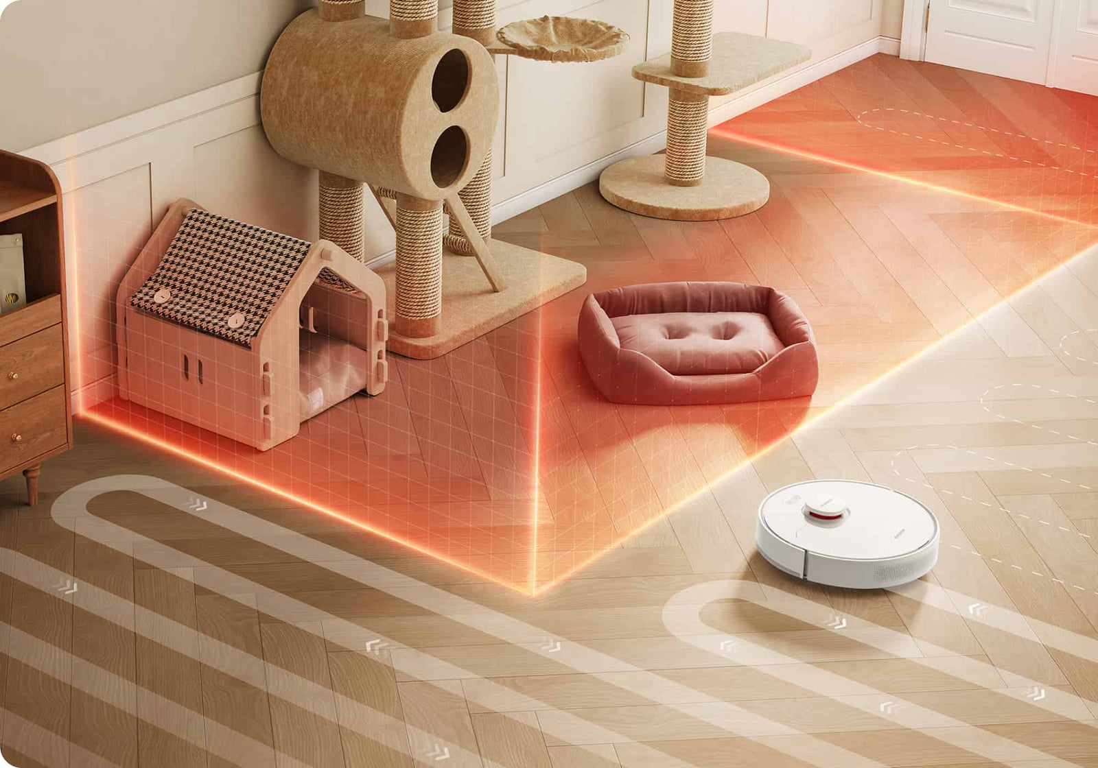 D9 Max génère rapidement une carte modifiable et planifie les trajets de nettoyage les plus efficaces pour nettoyer et naviguer de manière experte dans votre maison. Pendant ce temps, il nettoie méthodiquement, au lieu de passer d'un mur à l'autre au hasard.