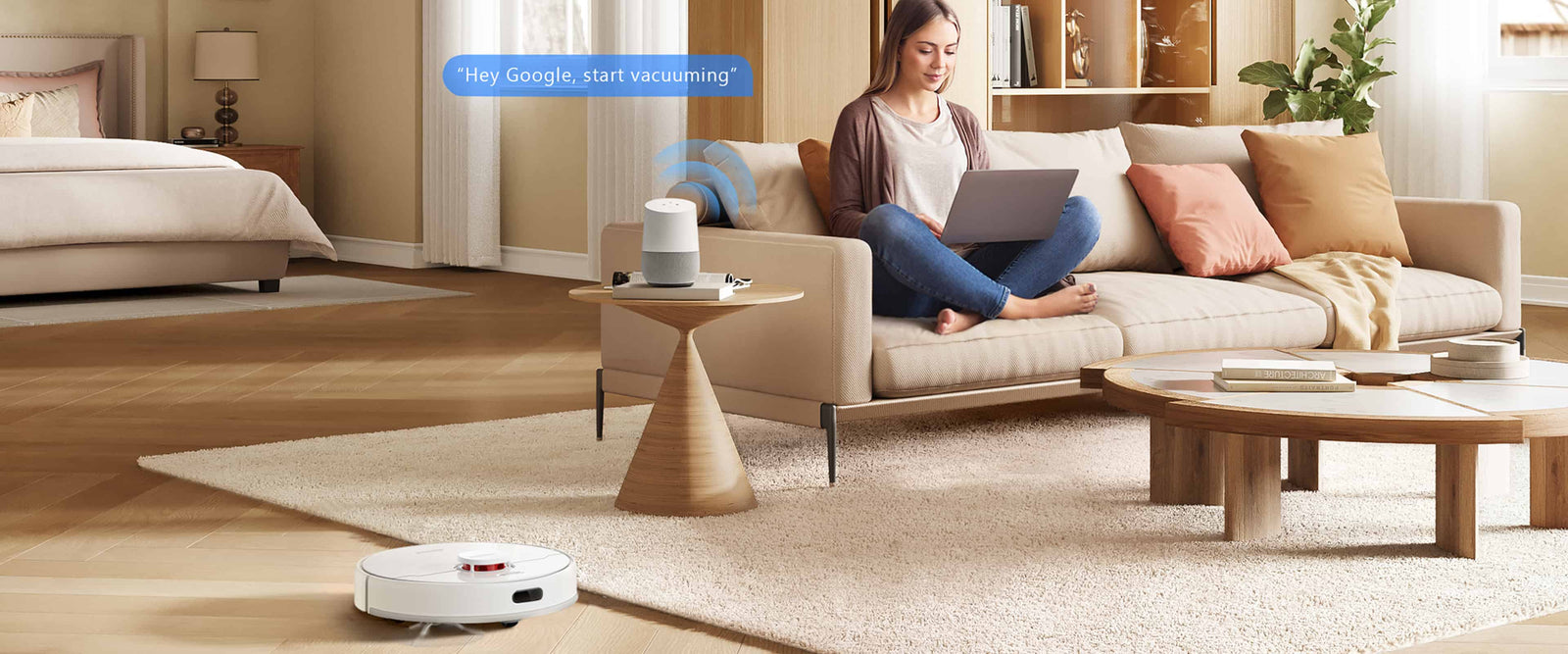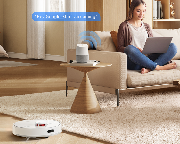 La compatibilité avec Alexa, Siri et Google Home met le nettoyage personnalisé au bout de votre langue. Il suffit de dire le mot pour démarrer, mettre en pause ou arrêter le nettoyage.