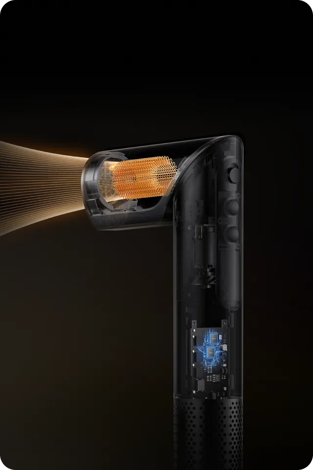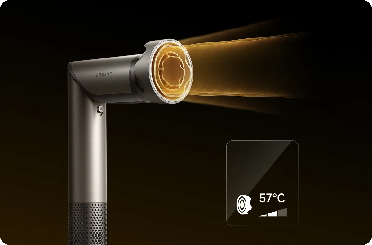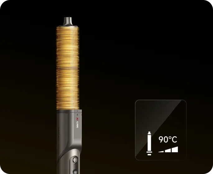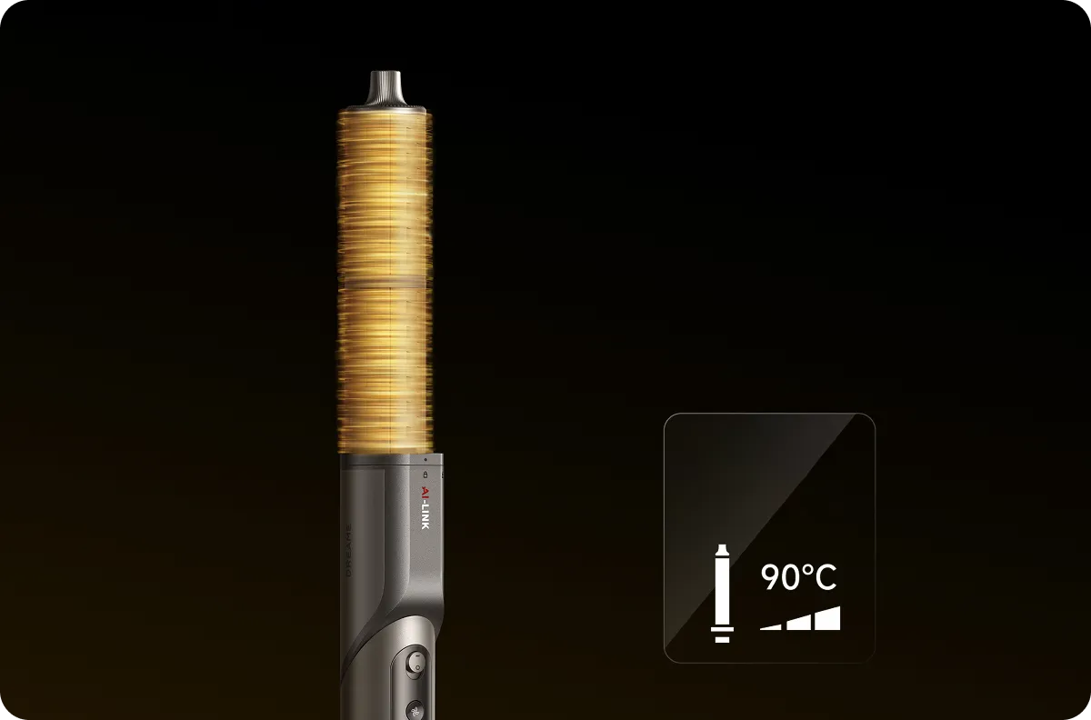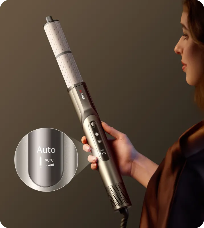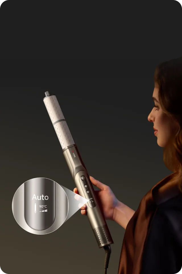 Lorsque l'embout diffuseur est détecté, le Dazzle active automatiquement le mode bouclage, qui diffuse 10 secondes d'air chaud pour mettre en forme, 5 secondes d'air froid pour fixer et une pause de 7 secondes pour faciliter le coiffage. Le contrôle intelligent rend les boucles souples et naturelles.