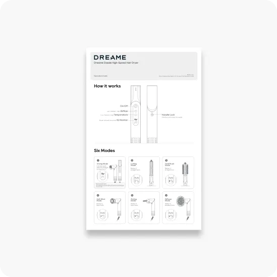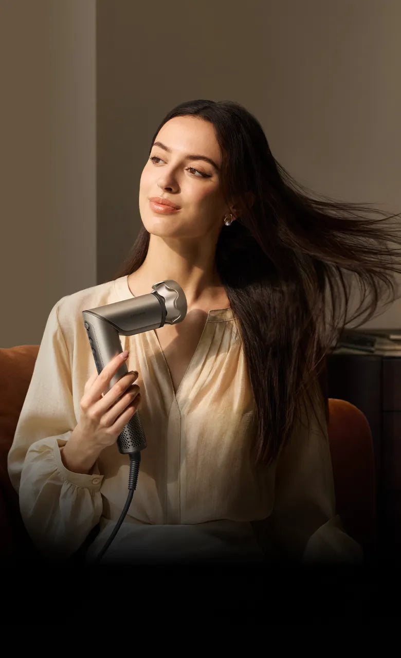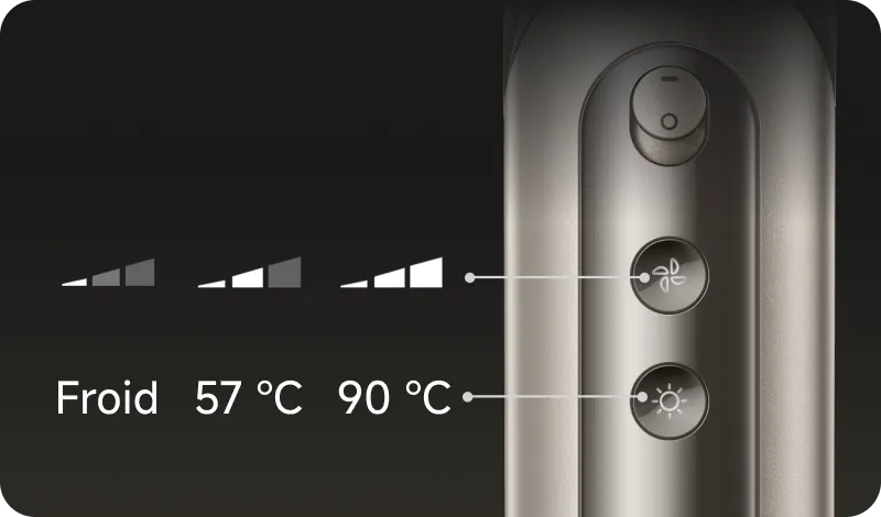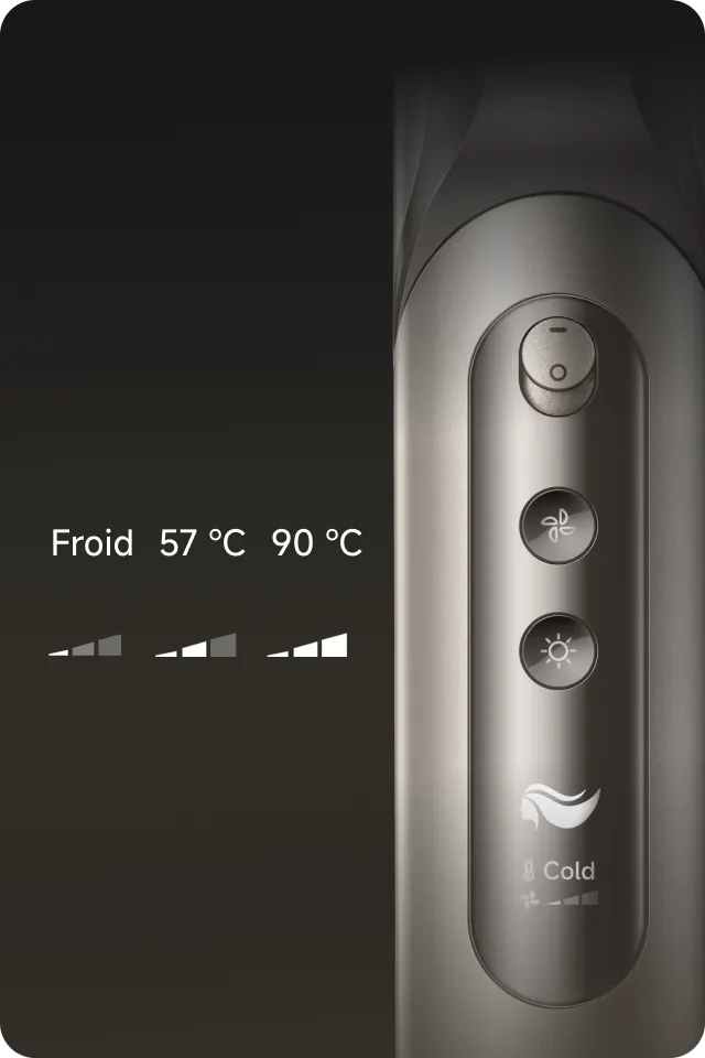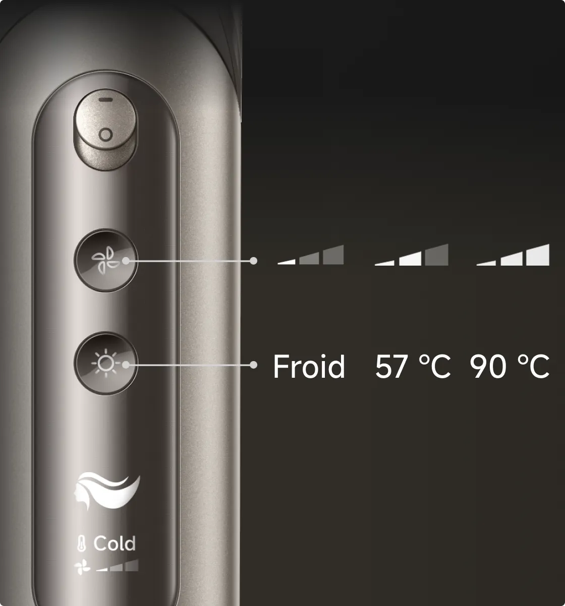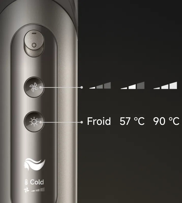Le Dazzle propose 3 modes de coiffage et 3 vitesses de débit d'air, avec contrôle manuel selon le type de cheveux et les préférences de coiffage, du flux d'air doux pour les cheveux fins au séchage puissant pour un volume accru.