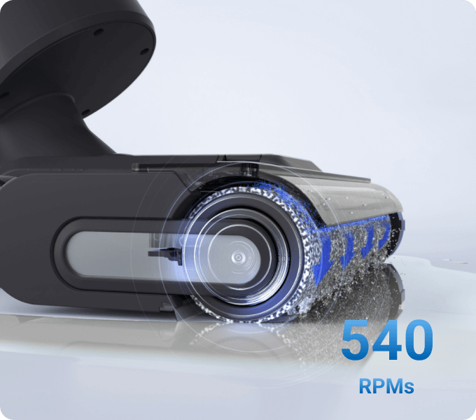 H11 Core, entraîné par une brosse rotative de 540 tr/min, offre des performances de nettoyage puissantes en s'attaquant aux saletés tenaces. En même temps, une brosse rotative à grande vitesse offre une puissante traction vers l'avant, ce qui garantit une expérience de nettoyage sans effort et relaxante.