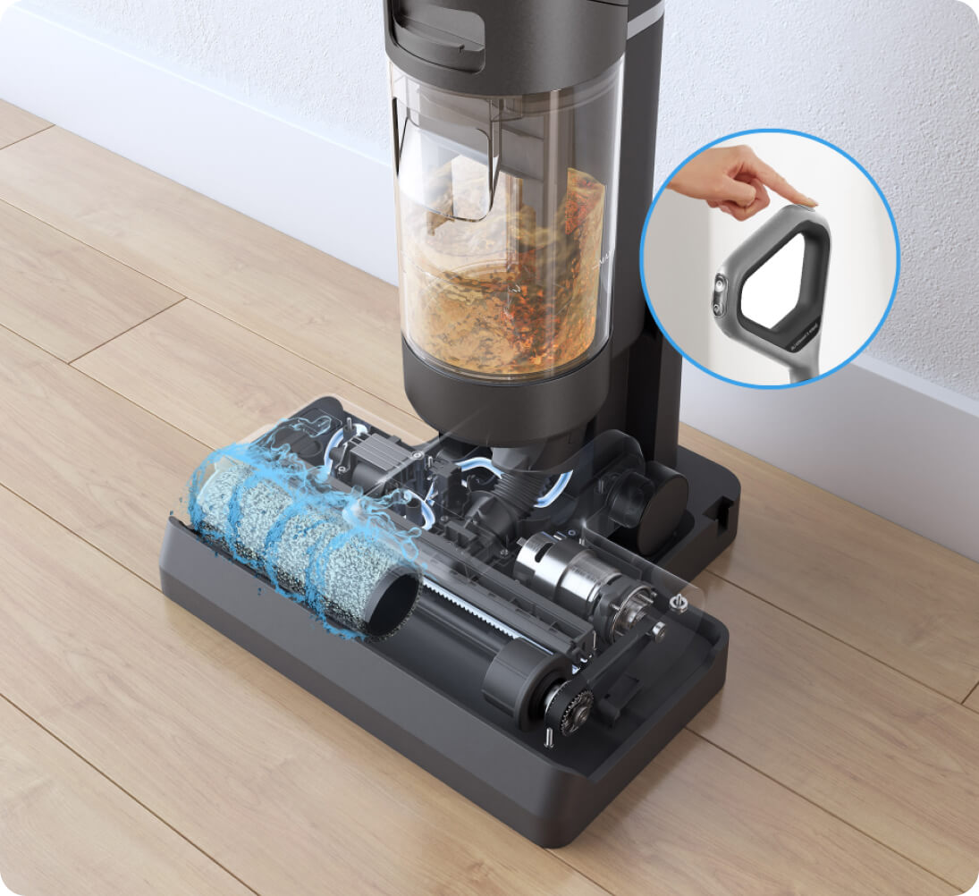 Le racleur dentelé intégré garantit un nettoyage remarquable de la brosse pour éliminer les saletés et rendre vos sols étincelants. La fin des tâches ménagères fatigantes, et des tâches de nettoyage interminables !