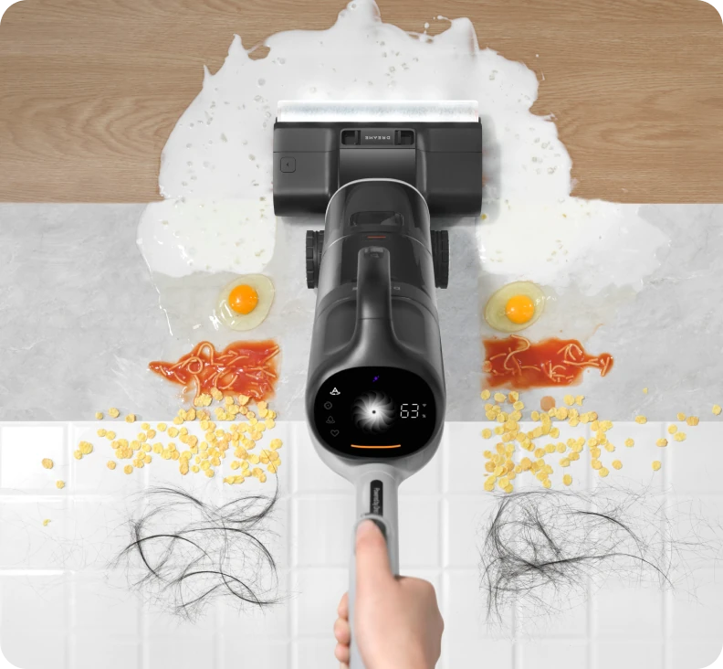 Un compagnon de ménage sans effort 5-en-1. Nettoyez différentes surfaces grâce aux performances de lavage des sols et aux 4 modes d'aspiration.