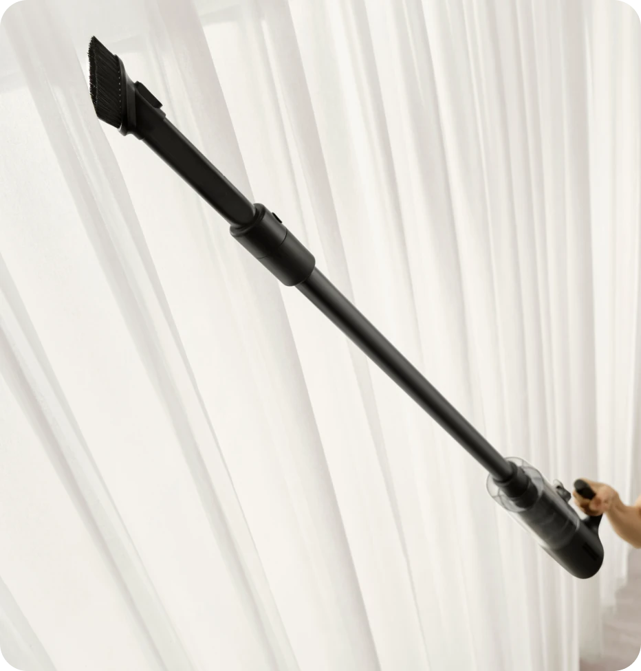 Portée à plat à 180°. Nettoyez sous les meubles et dans les recoins les plus étroits grâce à une aspiration exceptionnelle de 18 kPa.