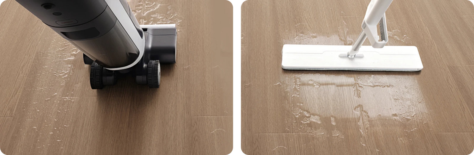 Le H14 Dual offre un nettoyage en profondeur qui ne laisse pratiquement aucune trace d'eau derrière lui pour préserver vos sols. En effet, le nettoyage traditionnel à la serpillière peut entraîner un risque de moisissure, d'accumulation d'odeurs, de gonflement et de déformation des planchers en bois.