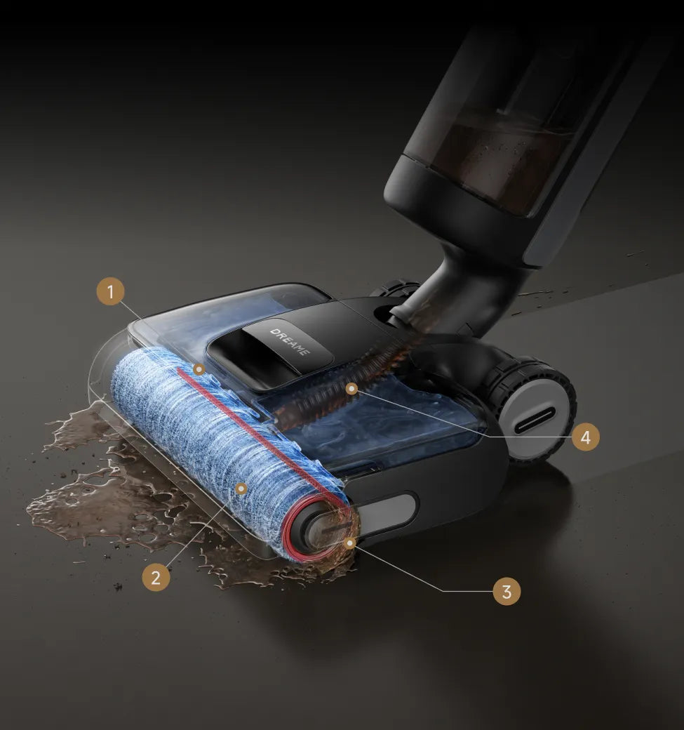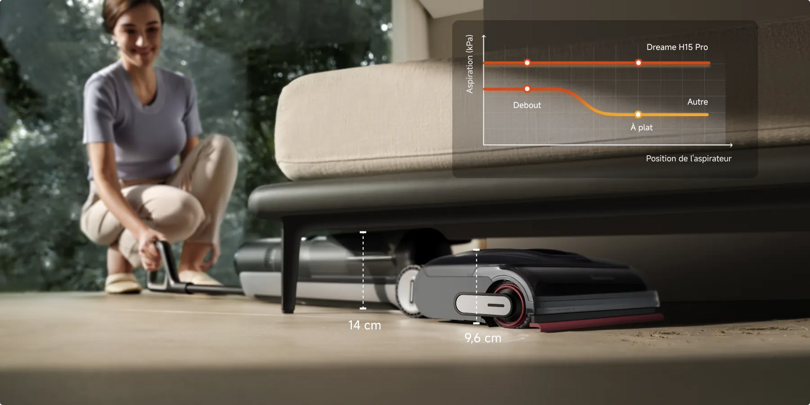 C'est le premier aspirateur eau et poussière de Dreame permettant d'atteindre le petit espace difficile de 2 cm*. Grâce au bras robotisé AI DescendReach et à une couverture triple arête efficace, le H15 Pro a un objectif de zéro espace oublié*, s'attaquant à la saleté le long des murs et des plinthes, sans avoir à nettoyer manuellement derrière lui.