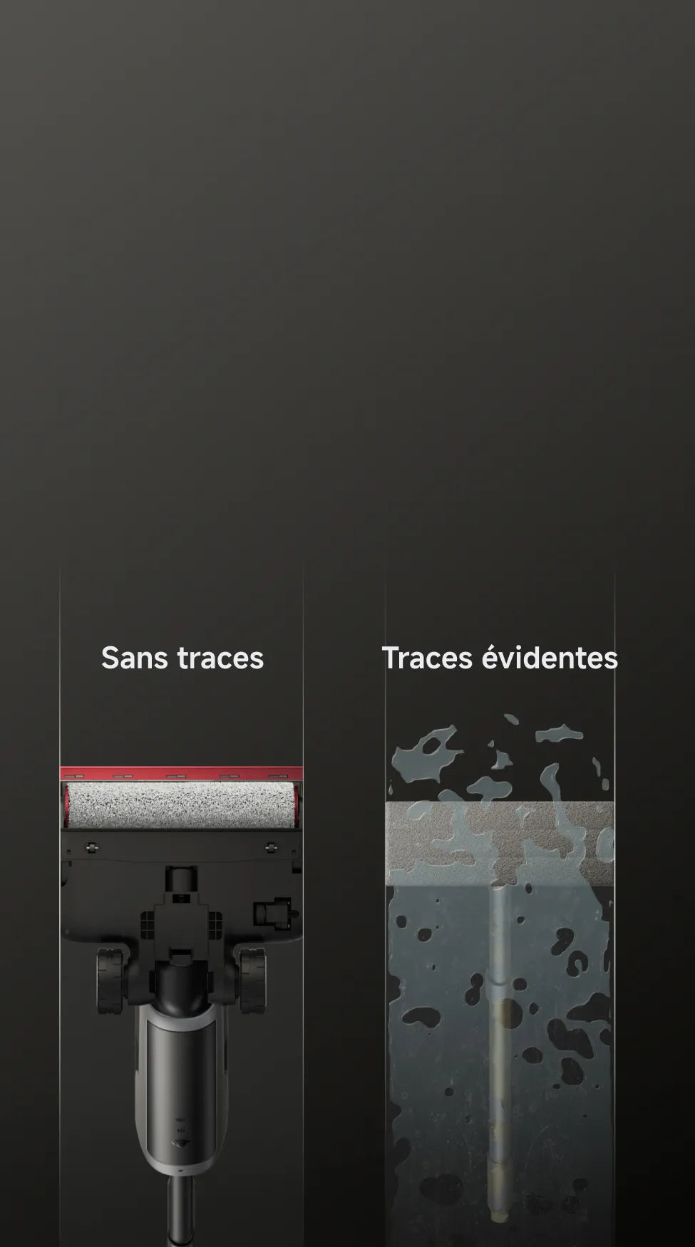 * 98,3 % : sur la base de nos données de laboratoire internes comparant le mode de nettoyage automatique Nettoyage en profondeur du H15 Pro avec le H14 Pro.