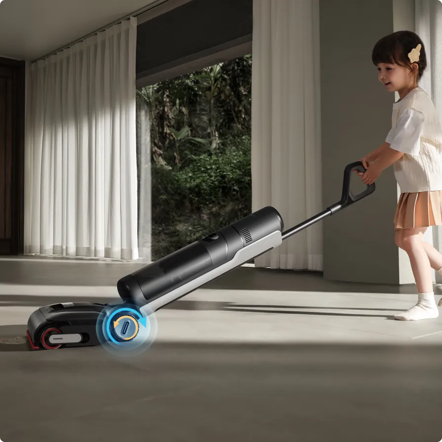 We use smart algorithms on the two rear wheels to make sure that backward motion is as smooth as moving forward. Easy pushing and pulling transforms floor cleaning from a physically taxing chore into a fun after-work activity.