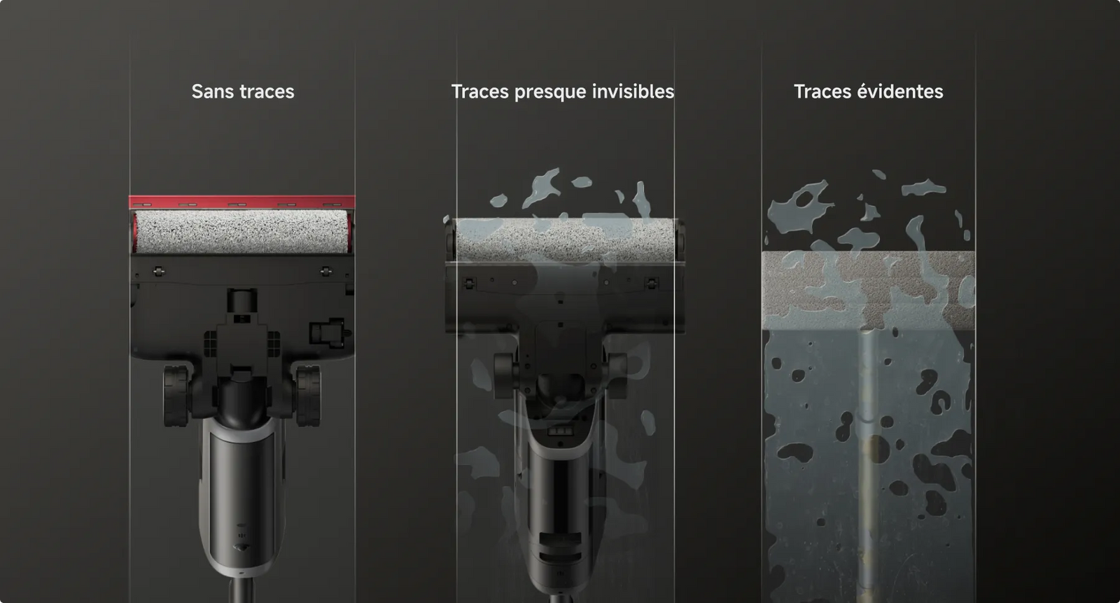Le bras robotisé, qui combine deux racleurs supplémentaires, fonctionne en parfaite harmonie pour recueillir les liquides restants*. En effet, le nettoyage traditionnel à la serpillière peut entraîner un risque de moisissure, d'accumulation d'odeurs, de gonflement et de déformation des planchers en bois.