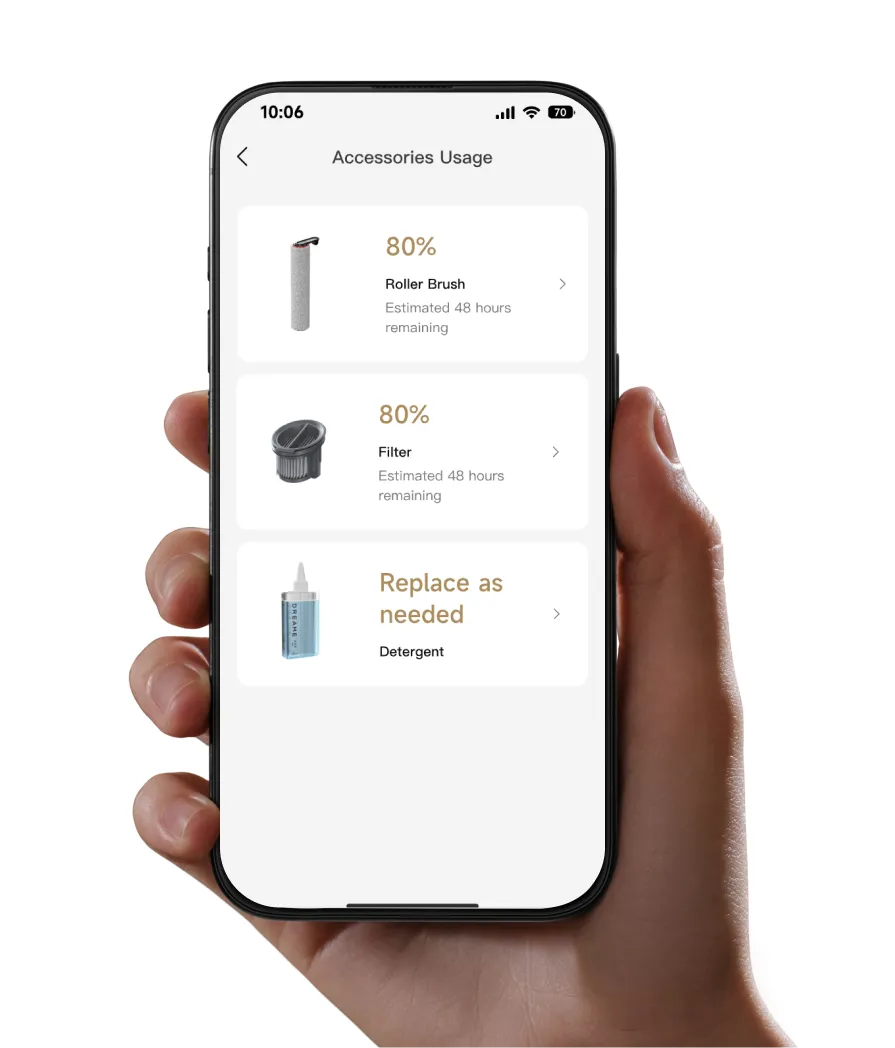 We use smart algorithms on the two rear wheels to make sure that backward motion is as smooth as moving forward. Easy pushing and pulling transforms floor cleaning from a physically taxing chore into a fun after-work activity.