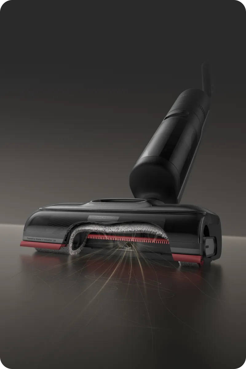Nous utilisons des algorithmes intelligents sur les deux roues arrière pour nous assurer que le mouvement vers l'arrière est aussi fluide que vers l'avant. La possibilité de pousser et tirer facilement l'aspirateur transforme la corvée physique du nettoyage des sols en une activité amusante après le travail.