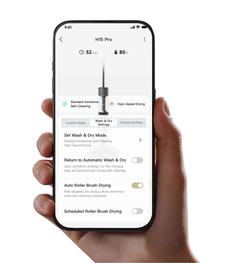 Le H15 Pro offre 60 minutes d'autonomie en mode lavage des sols. Il permet de nettoyer jusqu'à 400 m² sans avoir à le recharger, pour une expérience de nettoyage agréable et efficace du début à la fin*.
