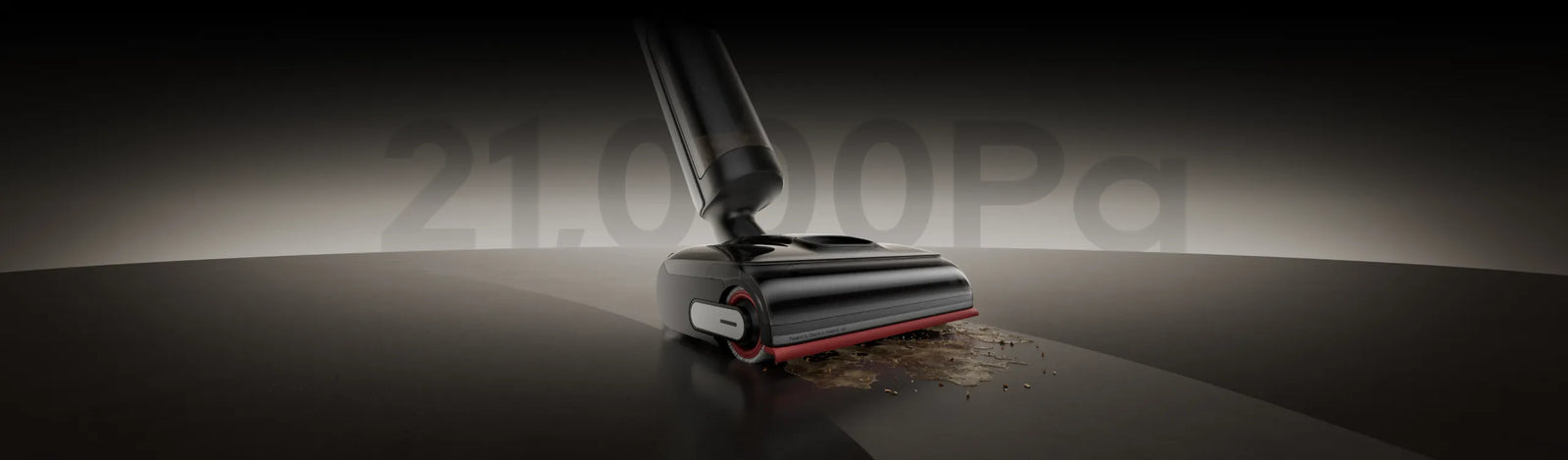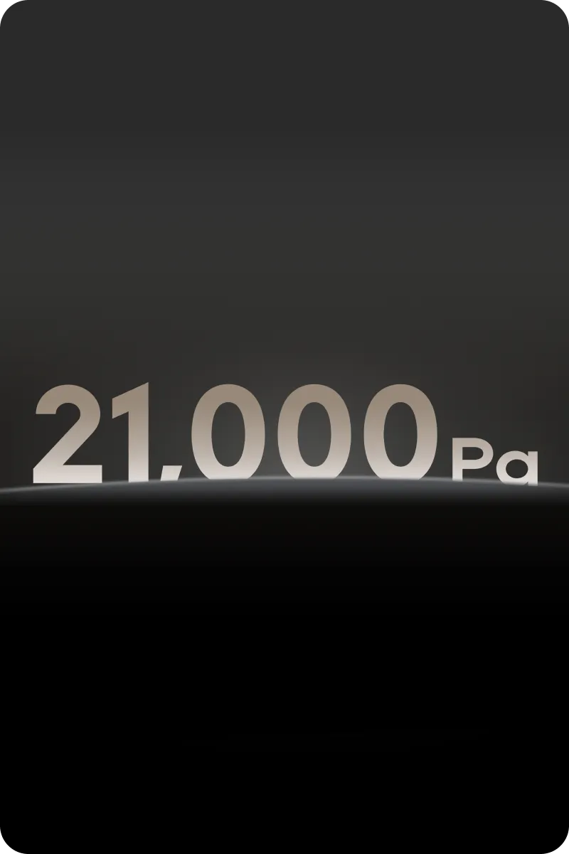 Le réservoir d'eau sale retient en toute sécurité l'eau sale, évitant ainsi d'endommager le moteur principal et permettant à l'aspirateur de maintenir une puissance d'aspiration jusqu'à 21 000 Pa* même lors du nettoyage sous les lits et les canapés.