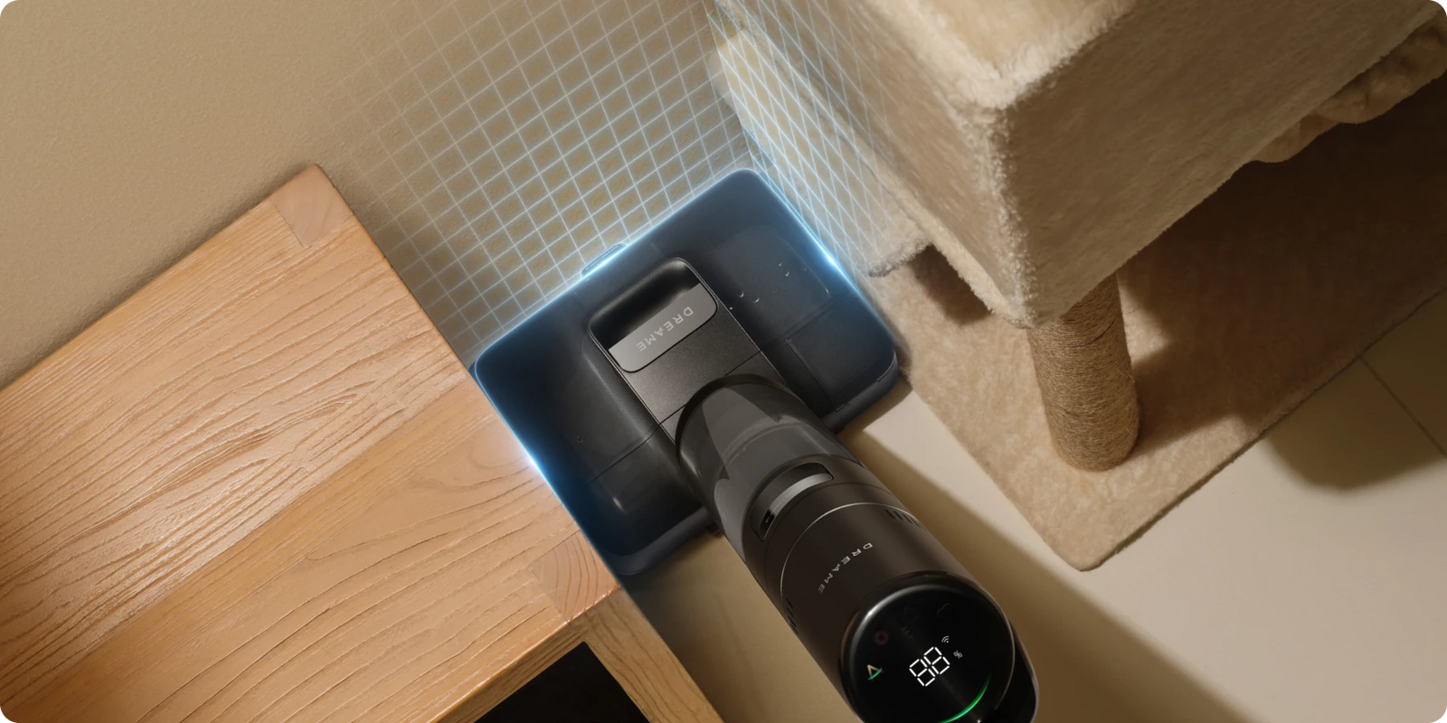 Le H15 Pro FoamWash réagit à vos mouvements : son bras robotisé optimisé par l'IA s'abaisse en seulement 0,2 s, offrant un nettoyage précis sur trois côtés.