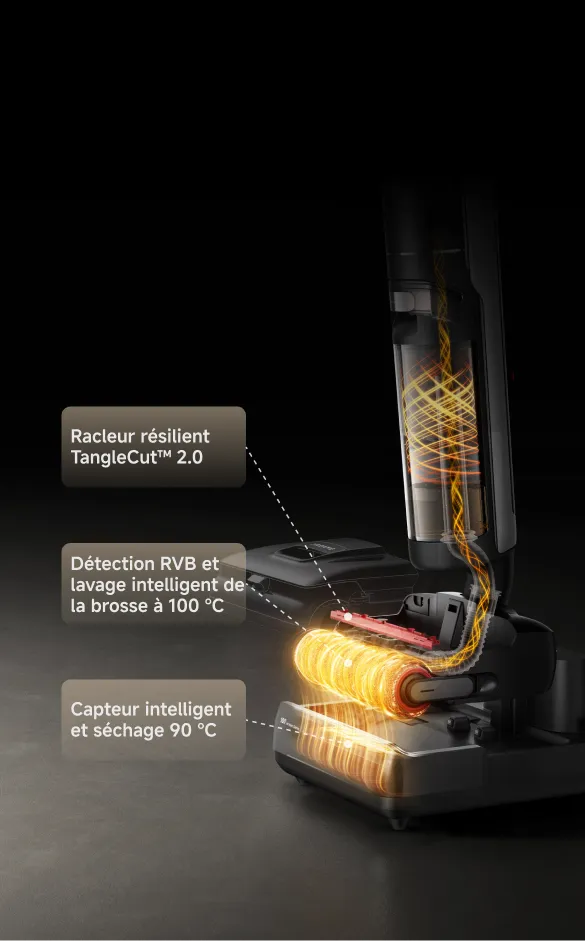 * 100 °C : la température au-dessus du système de chauffage PTC a atteint jusqu'à 100 °C, sur la base des conditions de test de notre laboratoire interne. La température de l'eau et les performances de nettoyage réelles peuvent varier.