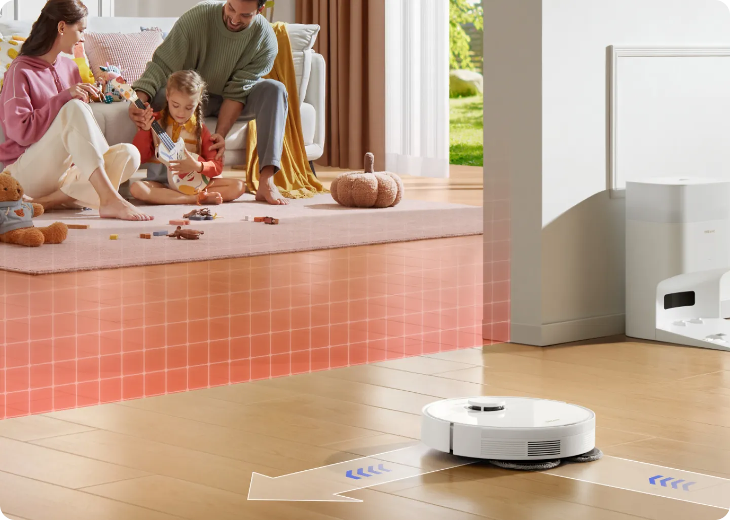 Le système d'évitement des obstacles 3DAdapt du L10s Plus évite les dangers potentiels, tels que les chaussures, et nettoie autour des objets, réduisant ainsi le risque de rencontrer des obstacles.