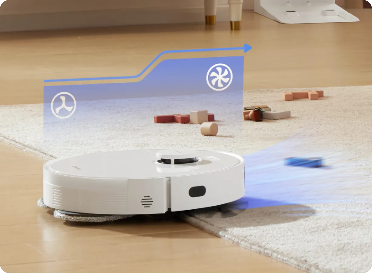 Notre reconnaissance ultrasonique de tapis/moquettes aide à différencier les sols durs et les tapis/moquettes pour diagnostiquer la stratégie de nettoyage adaptée en temps réel.