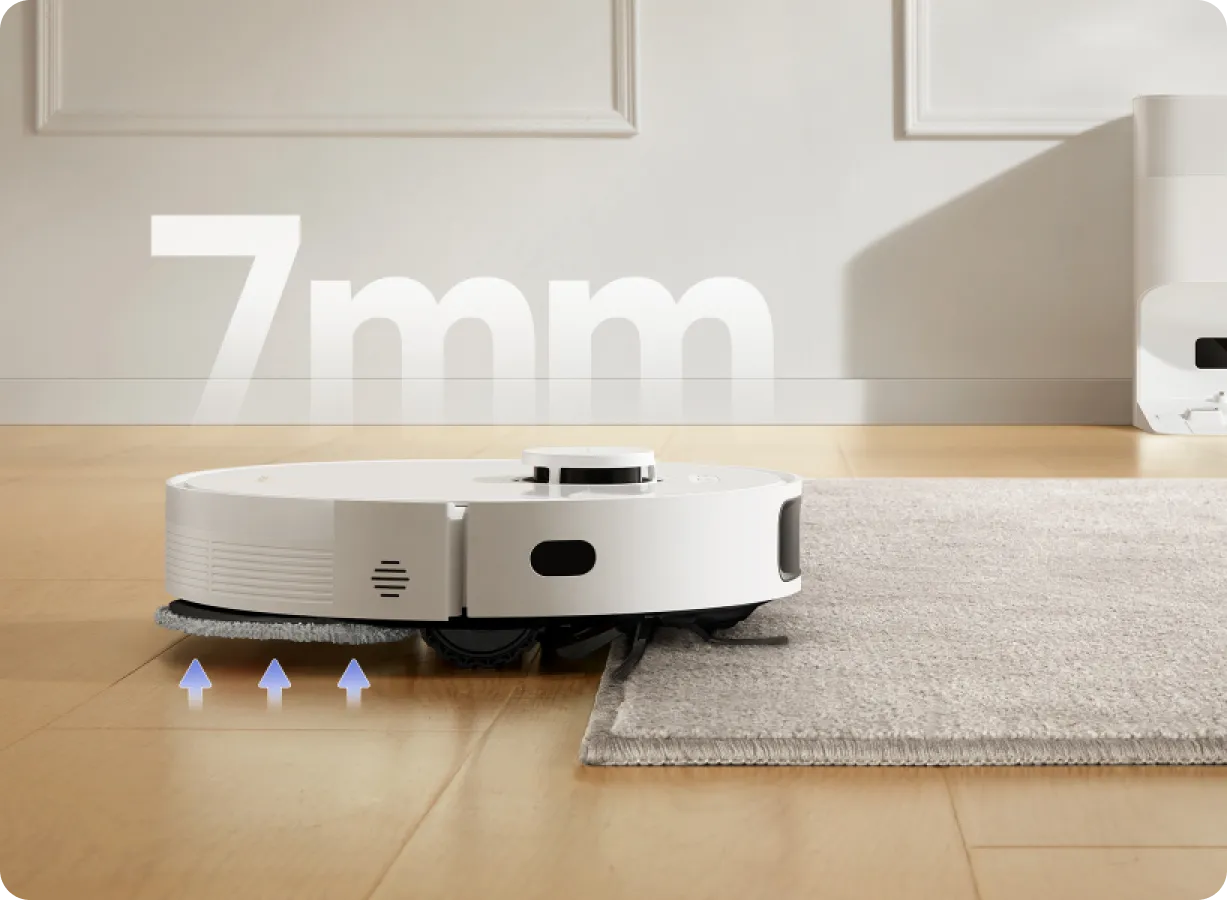 7mm : Le bas des serpillières peut être relevé jusqu'à 7 mm du sol. Pour les moquettes et tapis dont les poils sont supérieurs à 3 mm de long, réglez les paramètres du L10s Plus afin qu'il les évite lorsque les serpillières sont installées.