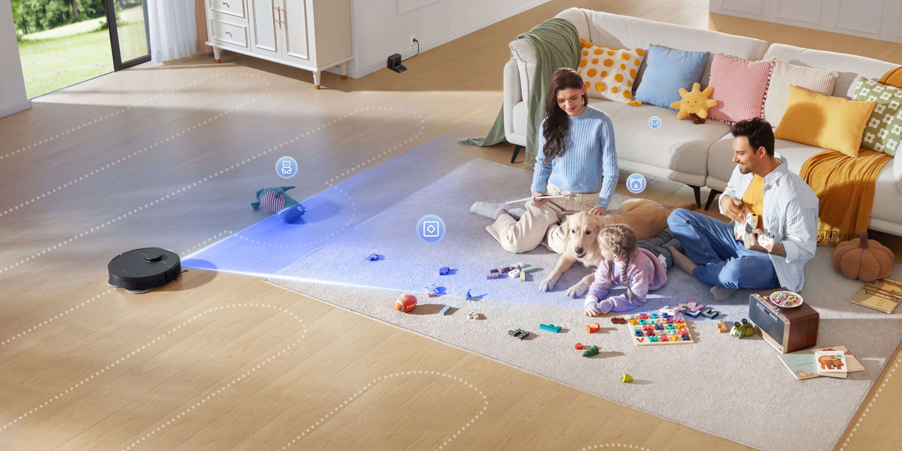 *Pour éviter de les mouiller, nous vous suggérons de configurer le robot via l'application Dreame pour qu'il évite les tapis/moquettes à poils moyens et longs.
