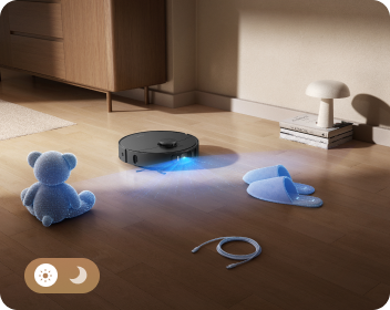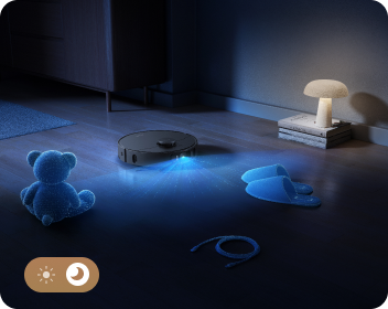 L'éclairage LED guide le robot aspirateur dans les zones sombres, tandis que la caméra repère les obstacles. Résultat : des déplacements rapides et efficaces dans les endroits bien éclairés et les recoins plus sombres de votre maison.
