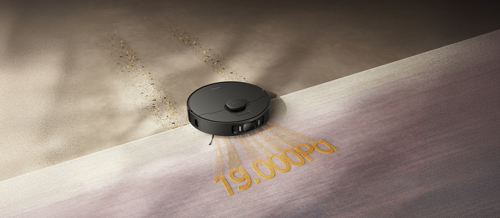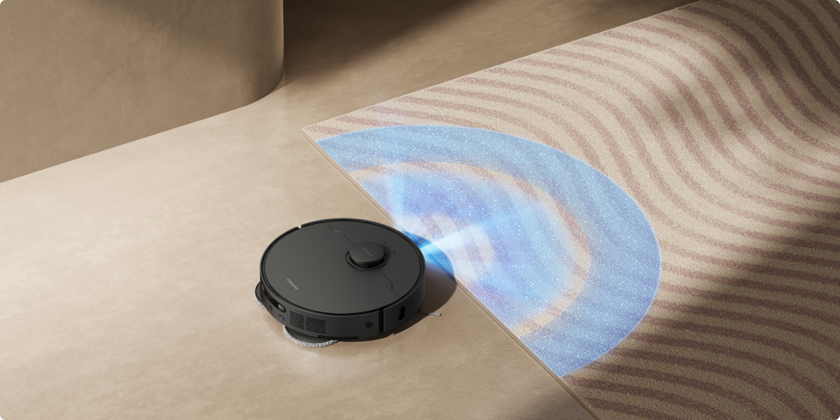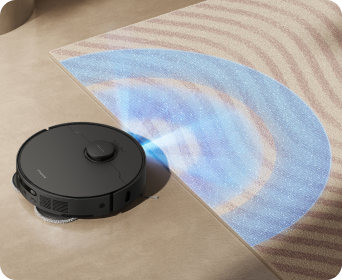 Le L40 Ultra AE est équipé d'une fonction de reconnaissance à ultrasons des tapis et moquettes. Il est capable de détecter automatiquement les tapis/moquettes, les nettoyer ou les éviter en fonction des réglages effectués dans l'application Dreamehome.