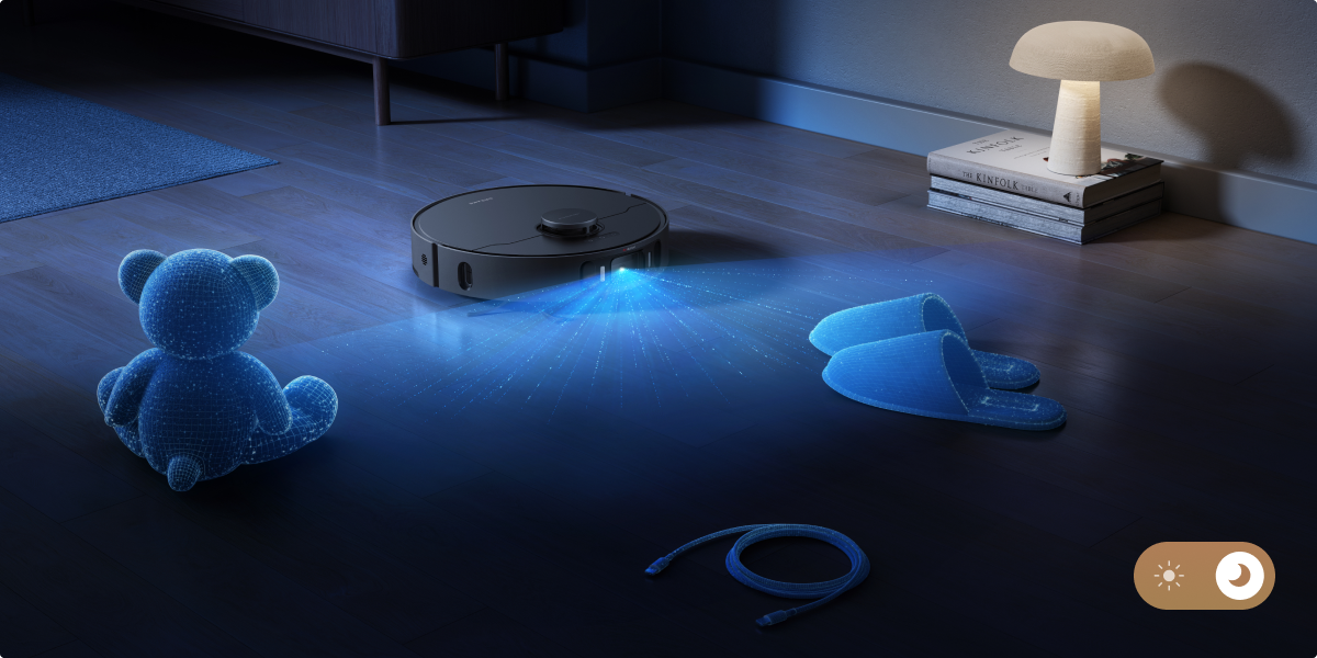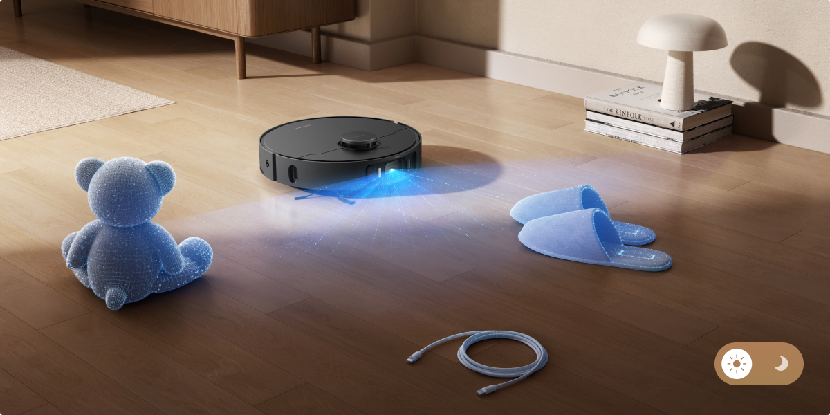 Grâce à l'IA et à l'éclairage 3D, le robot aspirateur parcourt votre maison en toute simplicité en s'adaptant à votre espace de vie et en évitant de nombreux obstacles, comme des chaussures, des jouets et bien plus encore, pour une navigation sans heurt.