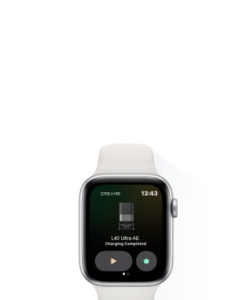 Profitez d'une connectivité fluide à portée de main. Démarrez ou interrompez le nettoyage via votre Apple Watch.