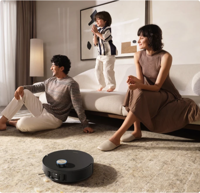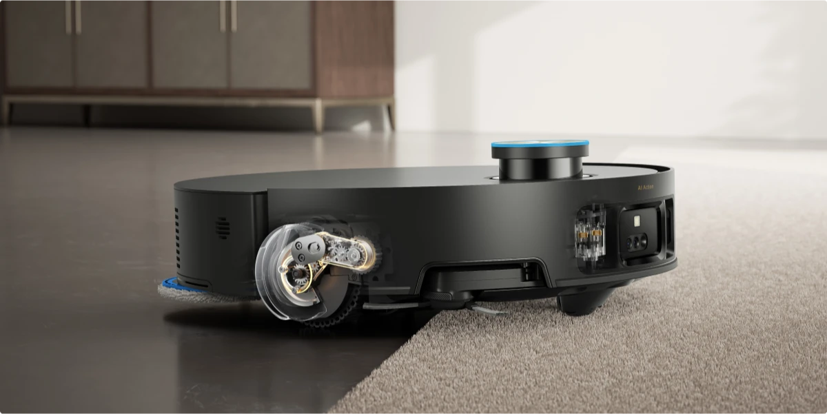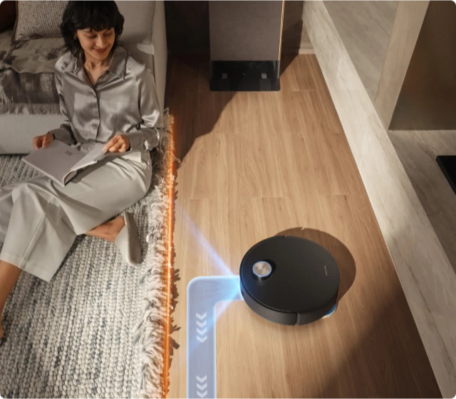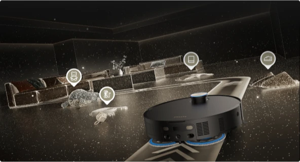 Avec l'éclairage 3D structuré et l'action de l'IA, le Matrix10 Ultra détecte rapidement plus de 240 types d'objets.* Cette technologie génère une carte 3D détaillée pour détecter et éviter les petits objets tels que les fils et les chaussettes, tout en naviguant en toute sécurité à proximité de grands obstacles tels que les chaussures et les socles de recharge.
