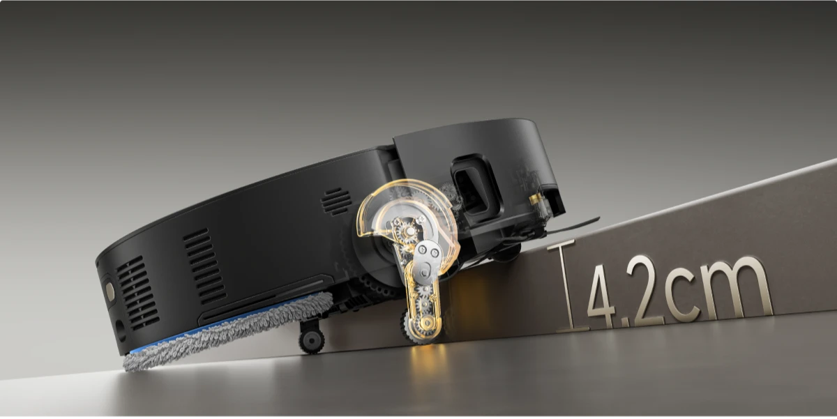 * 10,5 mm : sur la base des données de notre laboratoire interne. la différence de hauteur du robot aspirateur est de 10,5 mm avant et après le levage des serpillières.