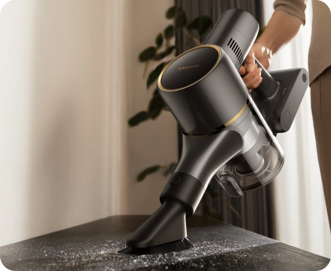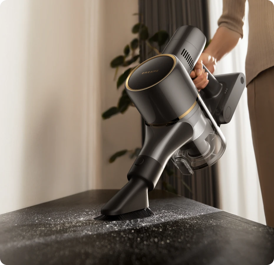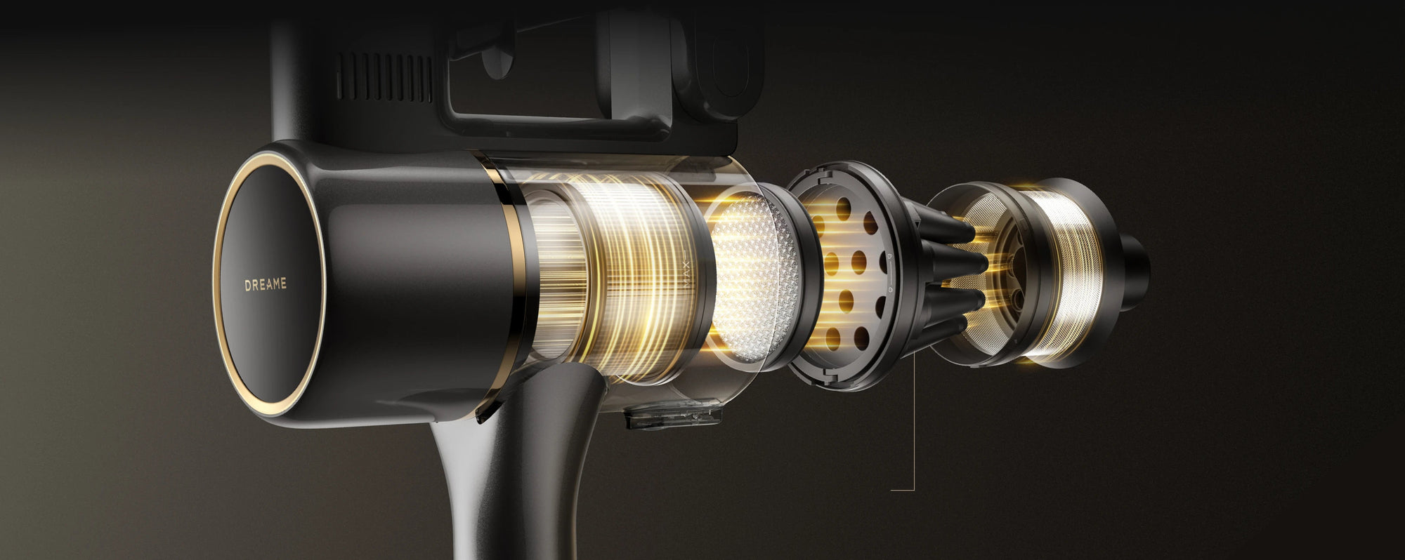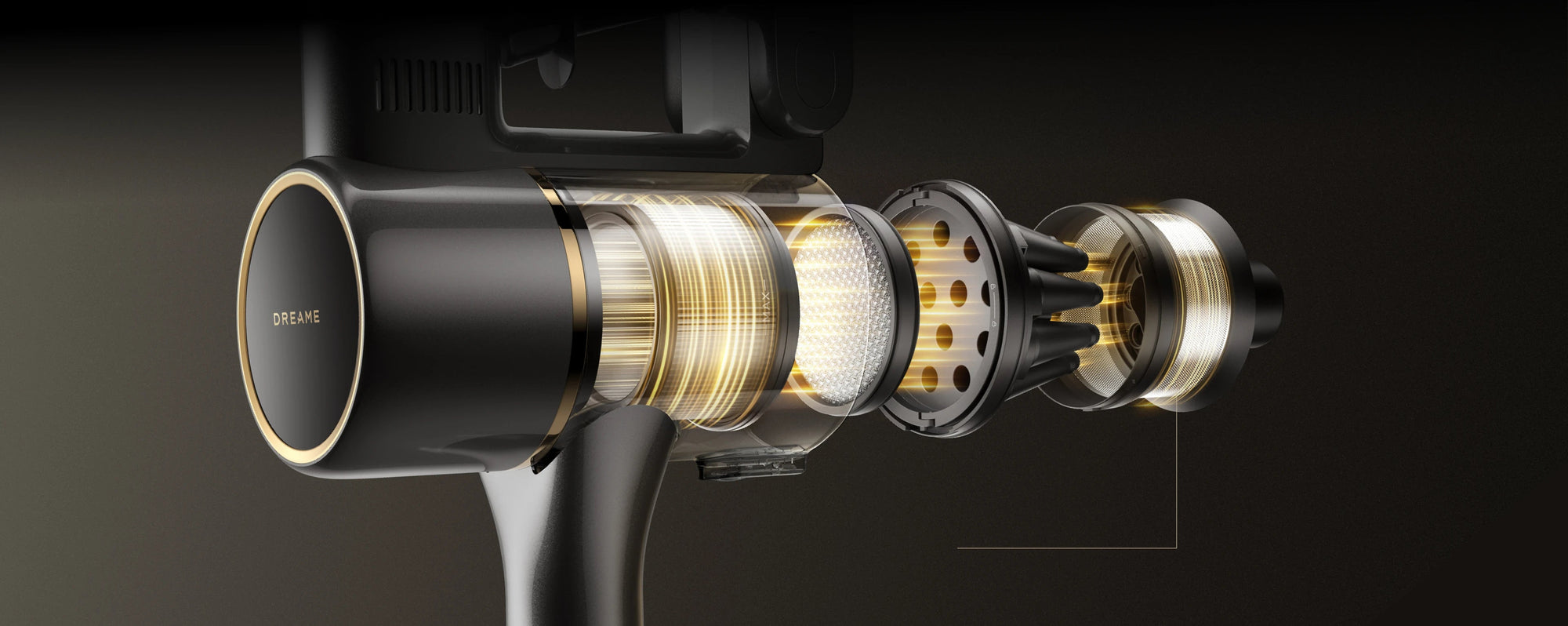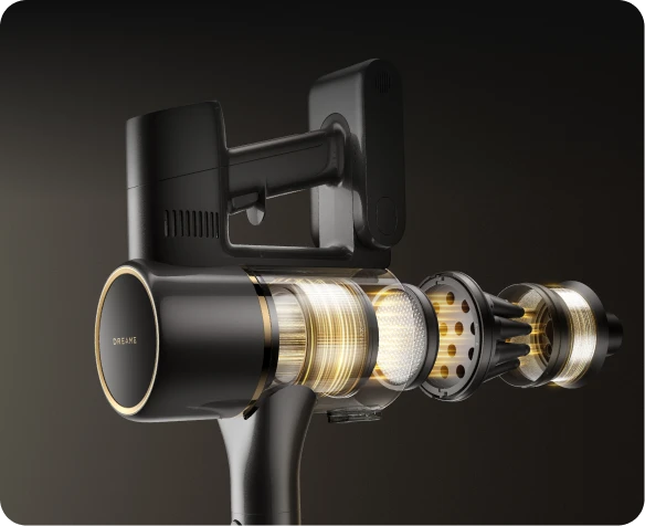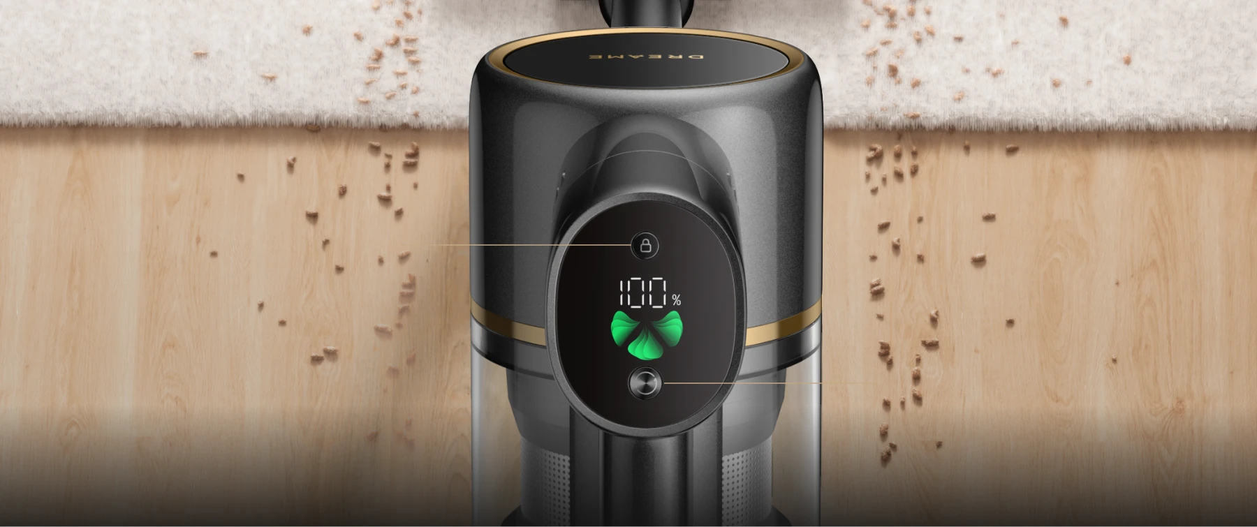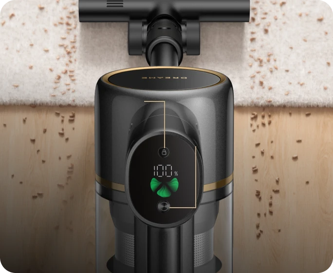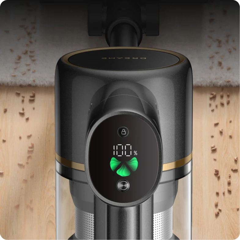 * 175 m² : sur la base des tests effectués dans le laboratoire Dreame, en mode Éco avec la brosse multisurface. Les performances réelles peuvent varier en fonction de l'agencement de votre maison.